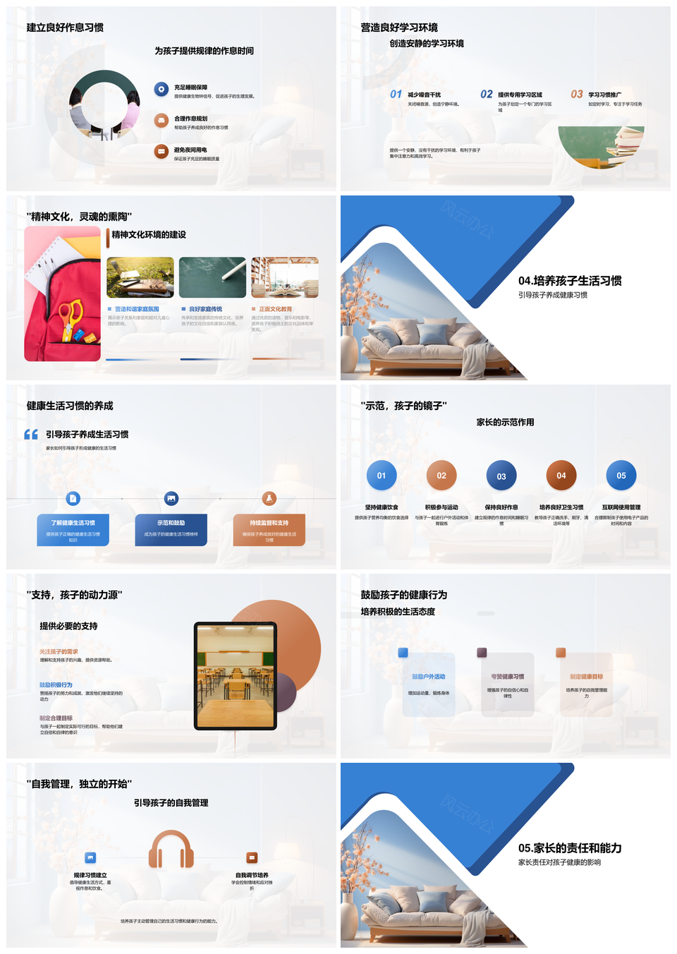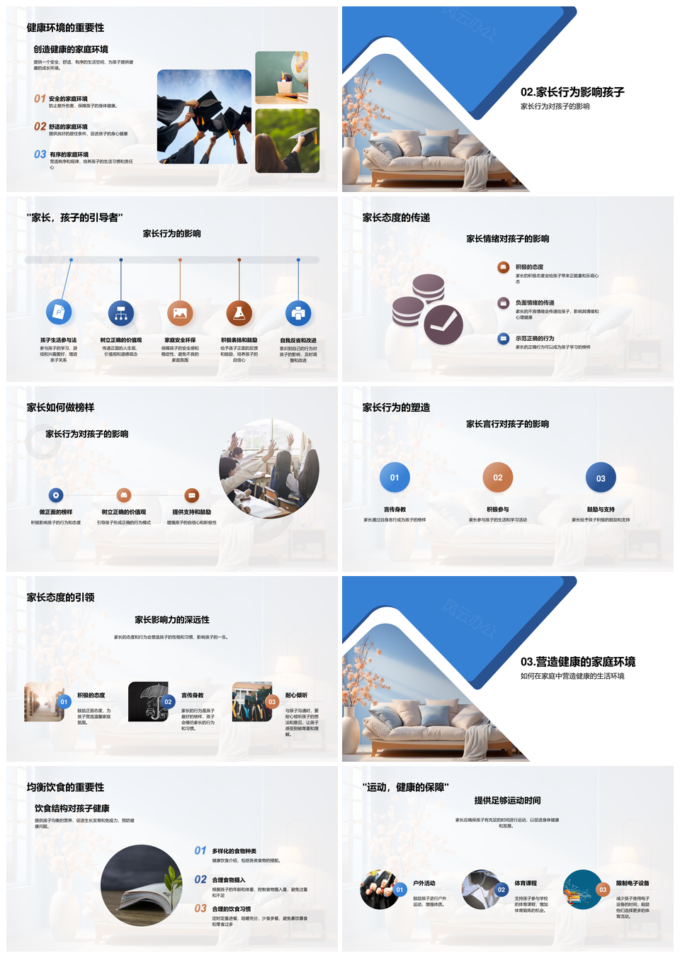 风云办公提供的家庭引导家长行为助力孩子健康习惯PPT模板,下载格式为pptx,一共33页,作品中文字及图均可以修改和编辑,图片更改请在作品中右键图片并更换,文字修改请直接点击文字进行修改。