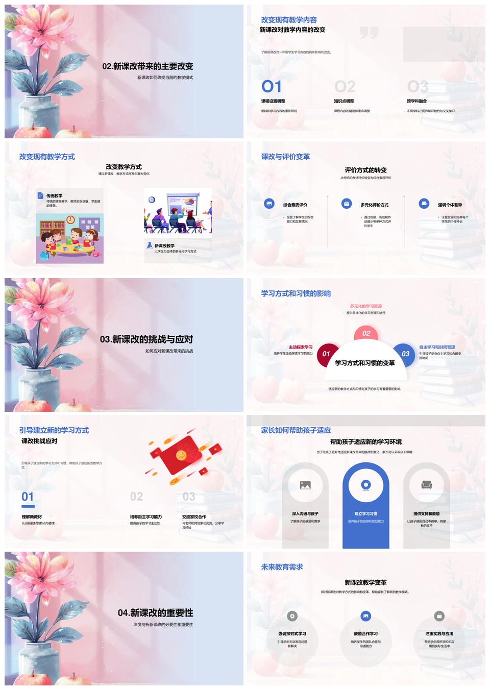 这是一张新课改一年级教育理念教学方式家长解析PPT模板,包含新课改、一年级、教育理念、教学方式、家长解析等主题内容,也可用作新课改一年级教育理念教学方式家长解析、新课改一年级教育理念教学方式、一年级教育理念教学方式家长解析、教育理念教学方式家长解析、新课改一年级教育理念家长解析、新课改教育理念教学方式家长解析、一年级教育理念教学方式家长、教育理念教学方式家长、新课改一年级教育理念、新课改一年级教学方式、教育理念教学方式、教学方式家长解析、新课改一年级家长、家长解析新课改、教学方式家长等PPT场景使用。 风云办公提供的新课改一年级教育理念教学方式家长解析PPT模板,下载格式为pptx,一共23页,作品中文字及图均可以修改和编辑,图片更改请在作品中右键图片并更换,文字修改请直接点击文字进行修改。