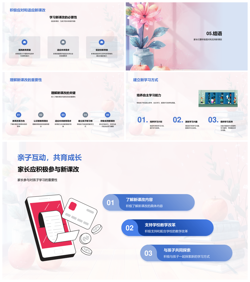 新课改一年级教育理念教学方式家长解析PPT模板推荐