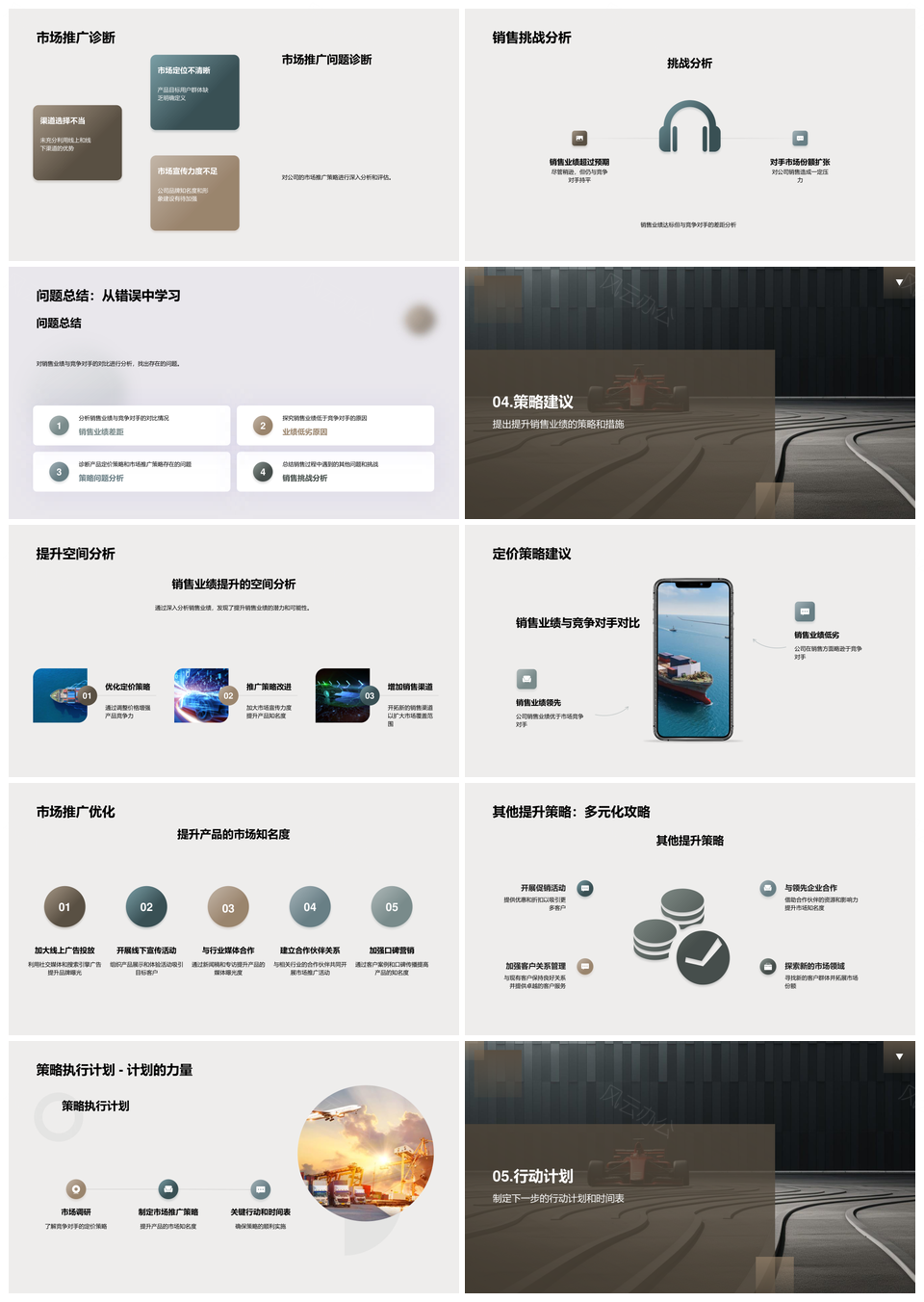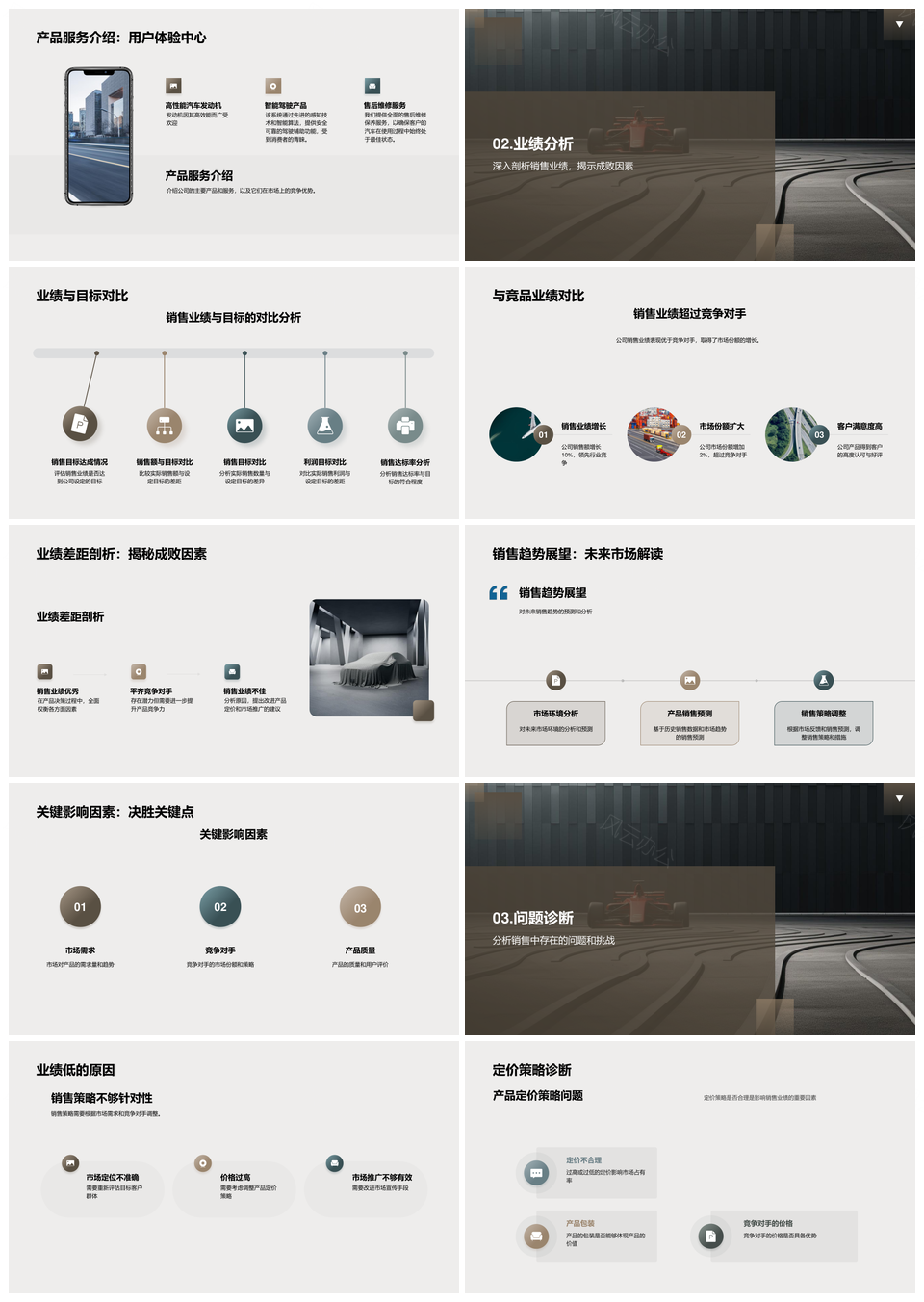 这是一张赛车行业销售策略优化提升业绩竞争分析PPT模板,包含赛车行业、销售策略、优化、提升、业绩、竞争、分析等主题内容,也可用作赛车行业销售策略优化、行业销售策略优化提升、销售策略优化提升业绩、策略优化提升业绩竞争、优化提升业绩竞争分析、赛车行业销售策略、行业销售策略优化、销售策略优化提升、策略优化提升业绩、优化提升业绩竞争、提升业绩竞争分析、赛车行业销售、行业销售策略、销售策略优化、策略优化提升等PPT场景使用。 风云办公提供的赛车行业销售策略优化提升业绩竞争分析PPT模板,下载格式为pptx,一共32页,作品中文字及图均可以修改和编辑,图片更改请在作品中右键图片并更换,文字修改请直接点击文字进行修改。