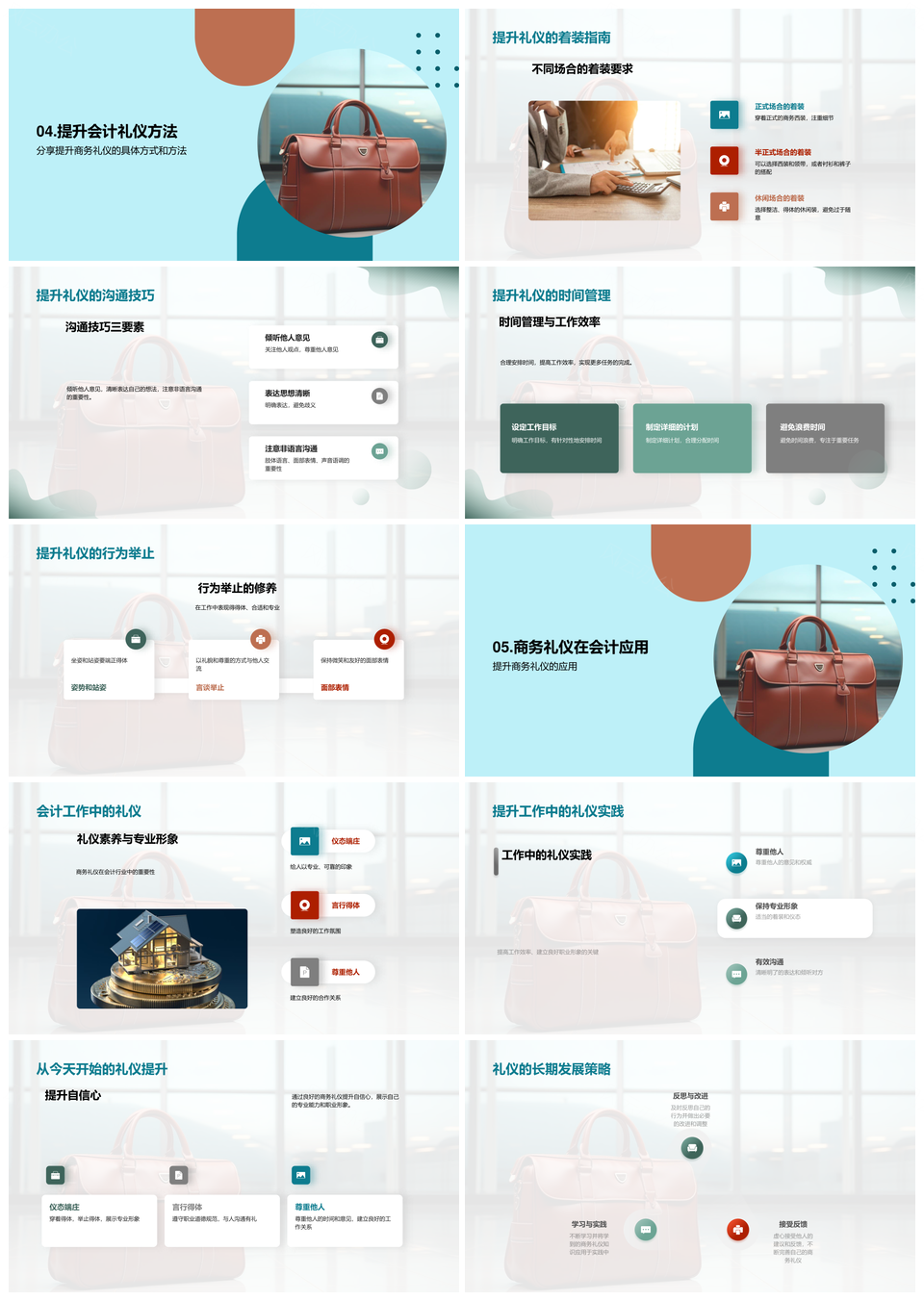 会计商务礼仪提升策略与职业形象影响力PPT模板推荐
