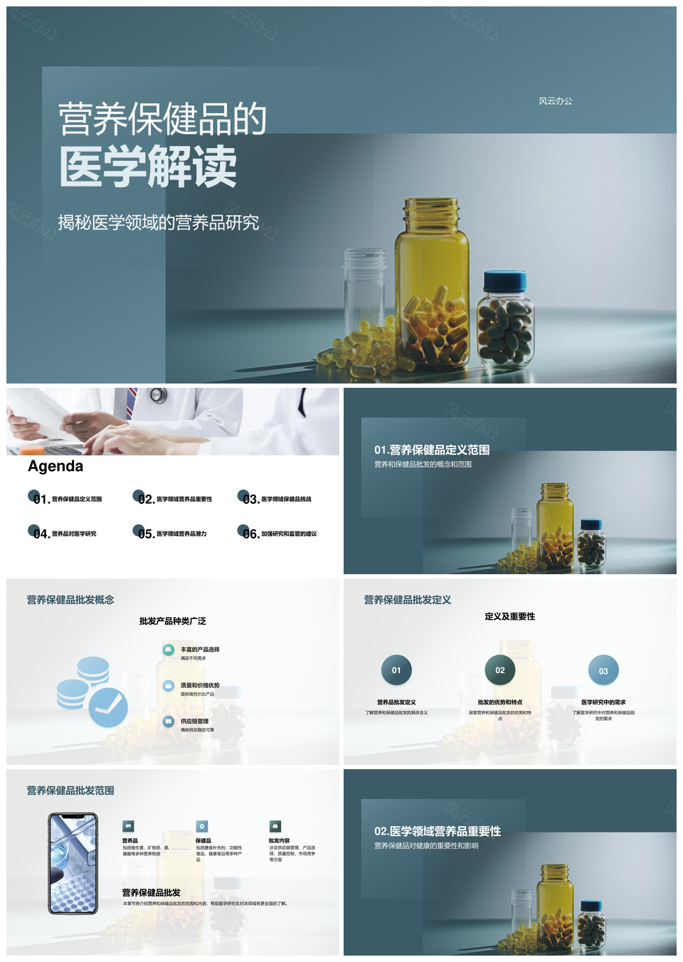 风云办公提供的医学解析营养保健品定义与种类PPT模板,下载格式为pptx,一共27页,作品中文字及图均可以修改和编辑,图片更改请在作品中右键图片并更换,文字修改请直接点击文字进行修改。