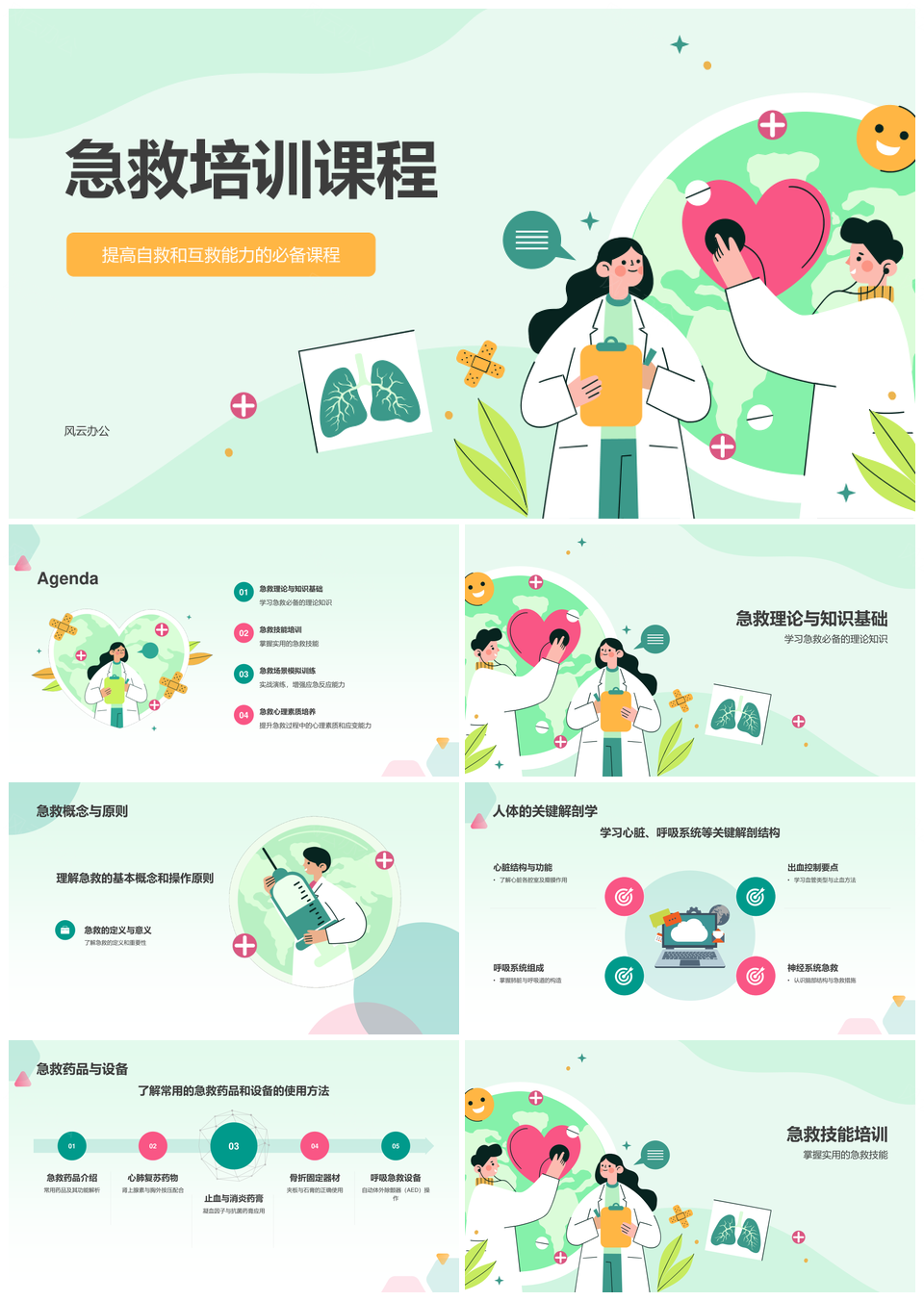 风云办公提供的绿色现代牙医口腔药疗急救培训健康PPT模板,下载格式为pptx,一共22页,作品中文字及图均可以修改和编辑,图片更改请在作品中右键图片并更换,文字修改请直接点击文字进行修改。