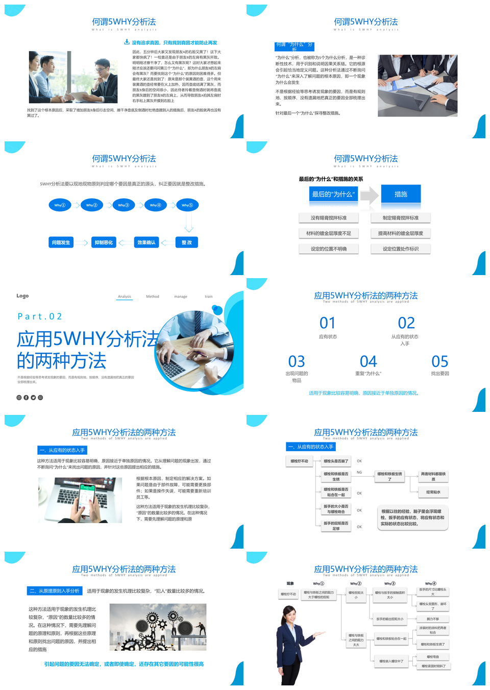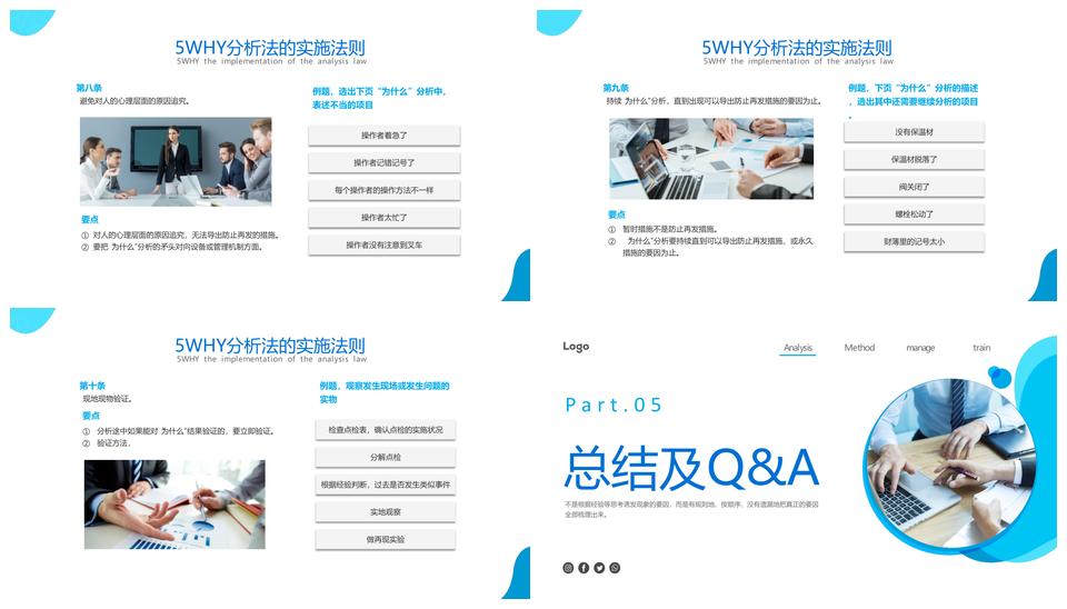 2025蓝色商务简约实拍5why分析法原因分析PPT模板