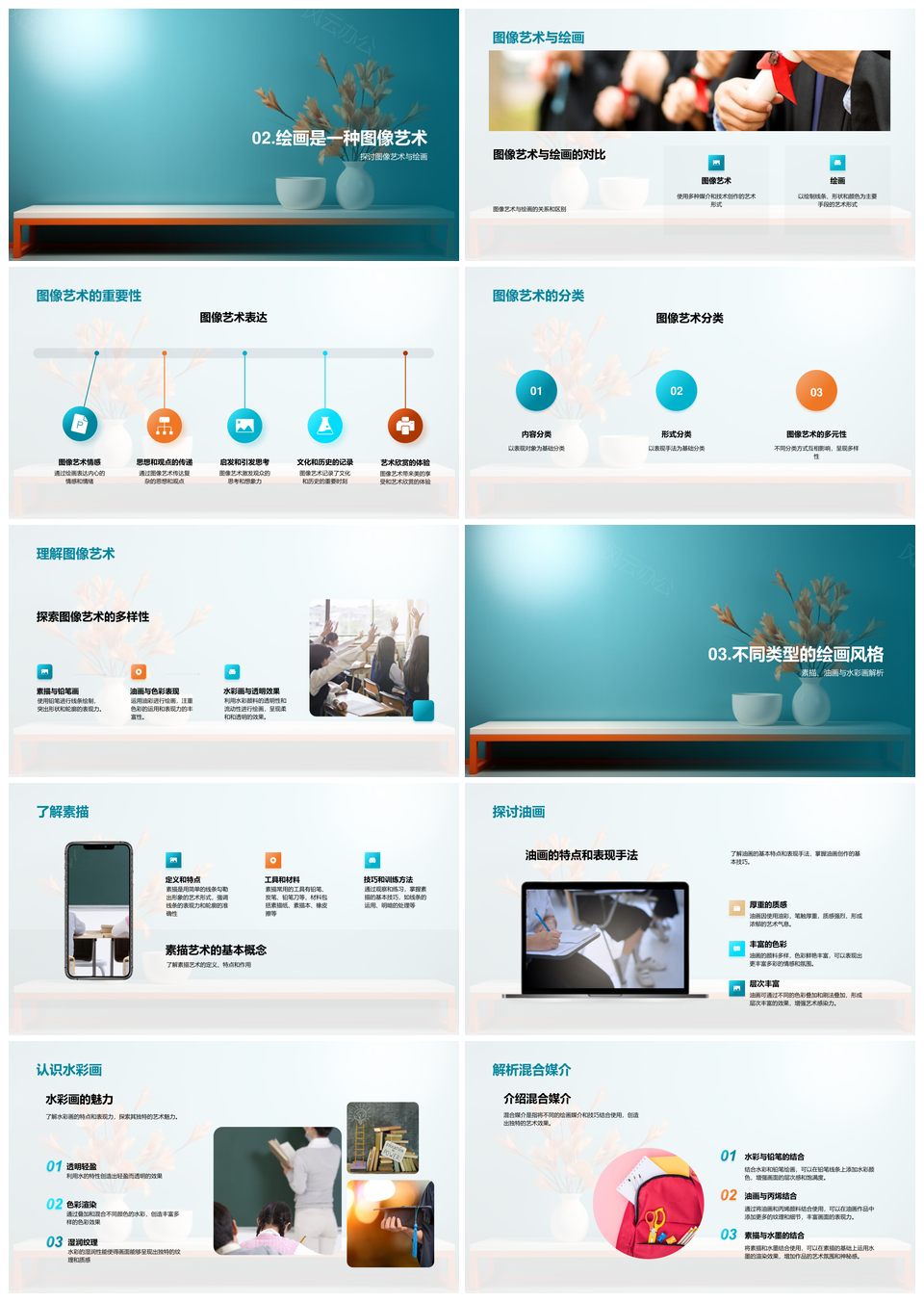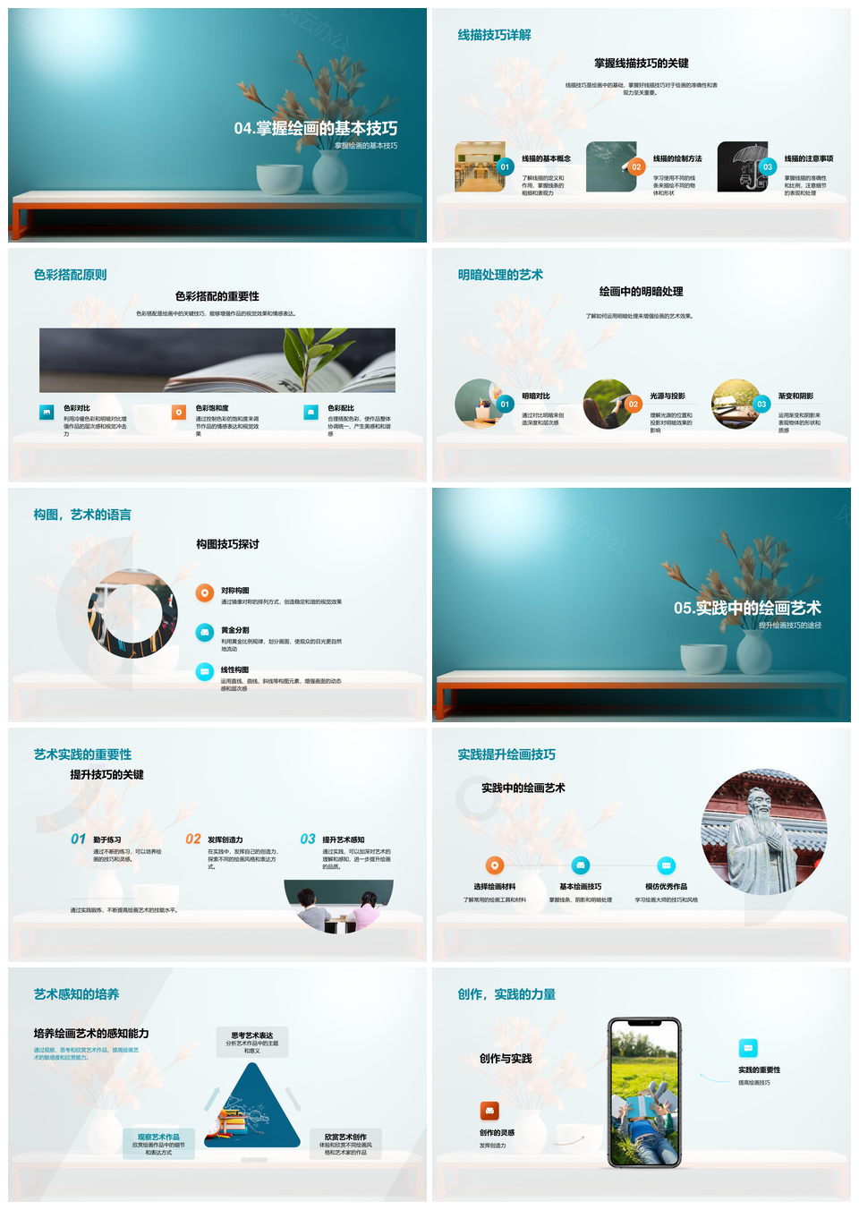 绘画艺术基础技巧与多画种实践PPT模板推荐