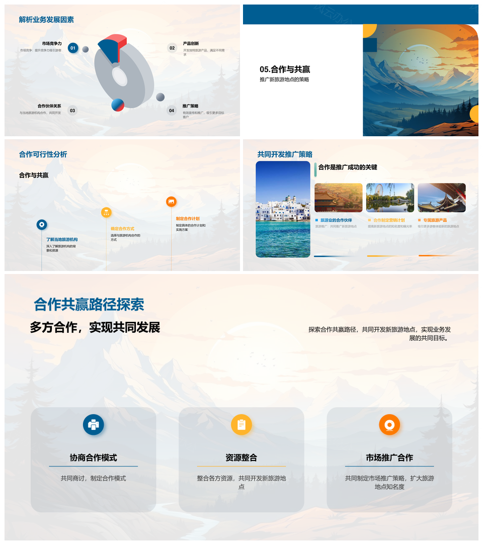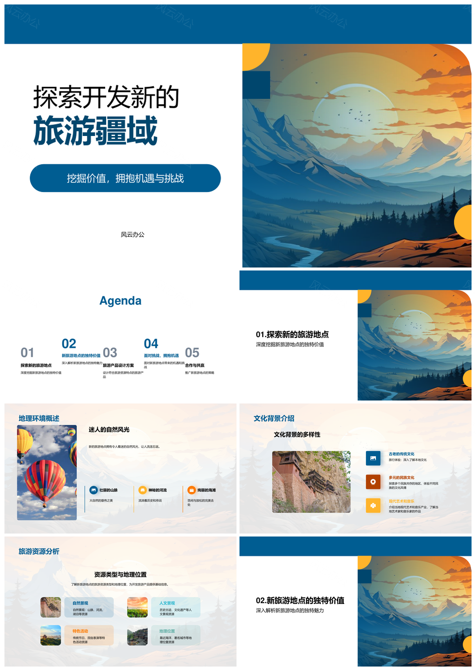 这是一张旅游行业分析师开发新疆域自然文化资源产品设计PPT模板,包含旅游行业、分析师、开发、新疆域、自然文化资源、产品设计等主题内容,也可用作新疆域自然文化资源产品设计、旅游行业分析师开发新疆域、分析师开发新疆域自然、开发新疆域自然文化、新疆域自然文化资源、自然文化资源产品设计、旅游行业分析师开发、分析师开发新疆域、开发新疆域自然、新疆域自然文化、自然文化资源、文化资源产品、资源产品设计、旅游行业分析师、新疆域自然等PPT场景使用。 风云办公提供的旅游行业分析师开发新疆域自然文化资源产品设计PPT模板,下载格式为pptx,一共23页,作品中文字及图均可以修改和编辑,图片更改请在作品中右键图片并更换,文字修改请直接点击文字进行修改。
