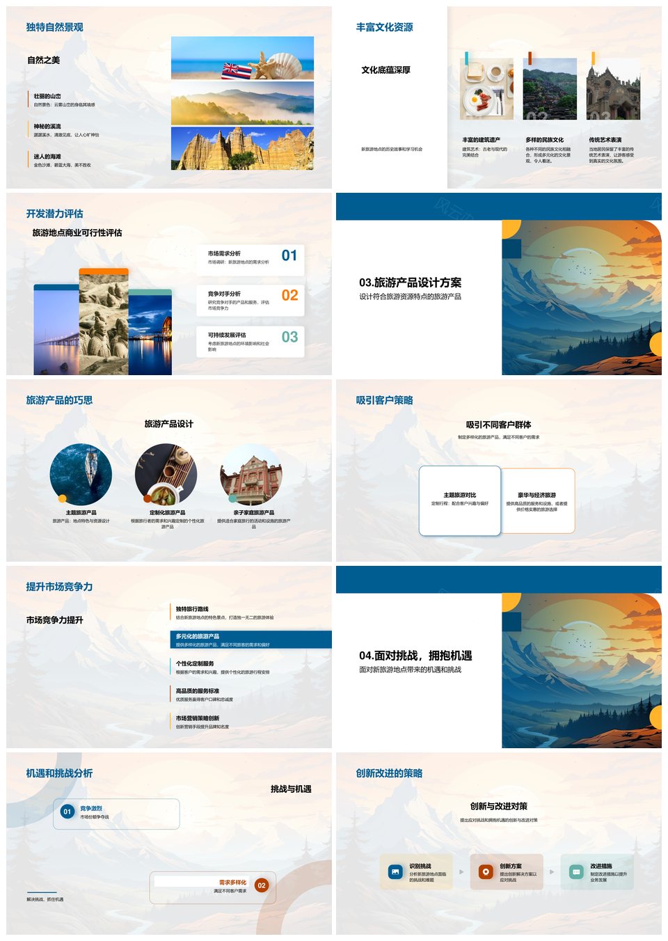 旅游行业分析师开发新疆域自然文化资源产品设计PPT模板推荐