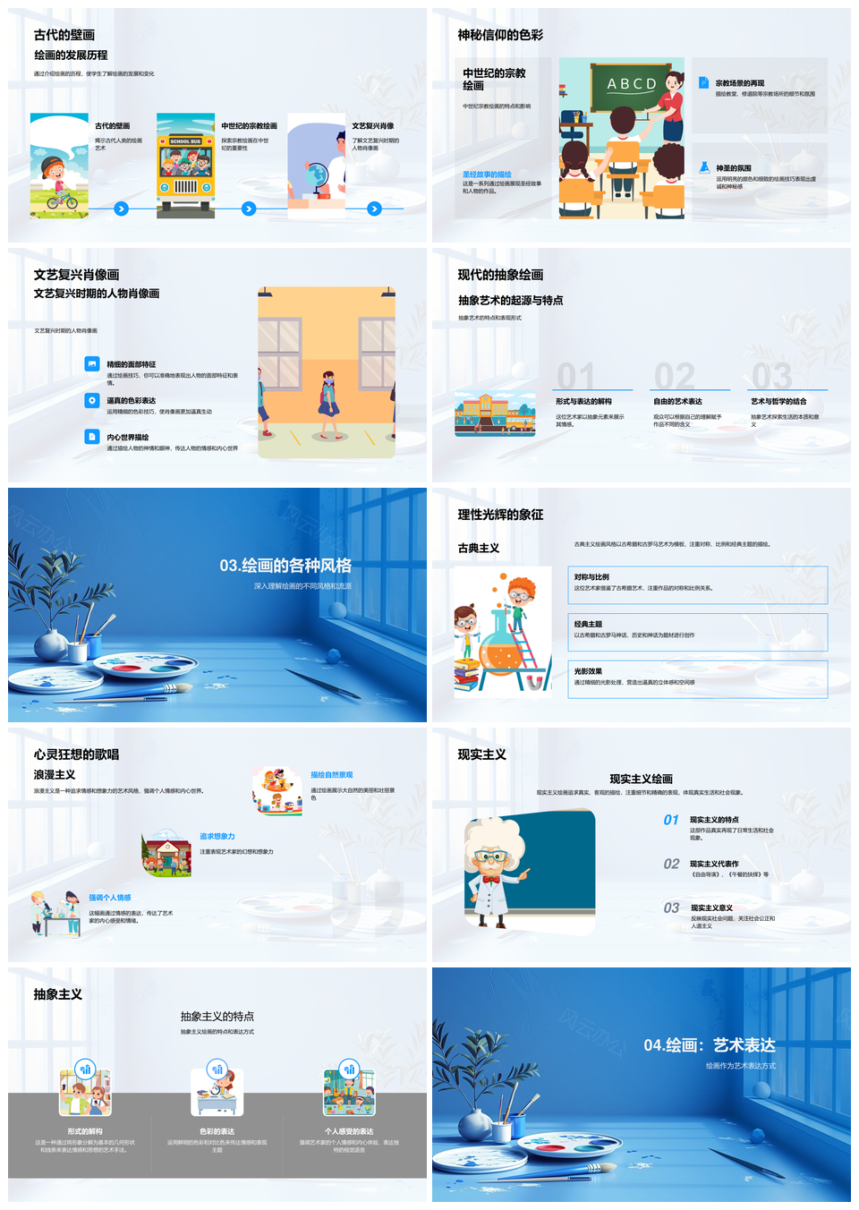 2025绘画艺术变迁从古壁画至抽象主义创作PPT模板推荐