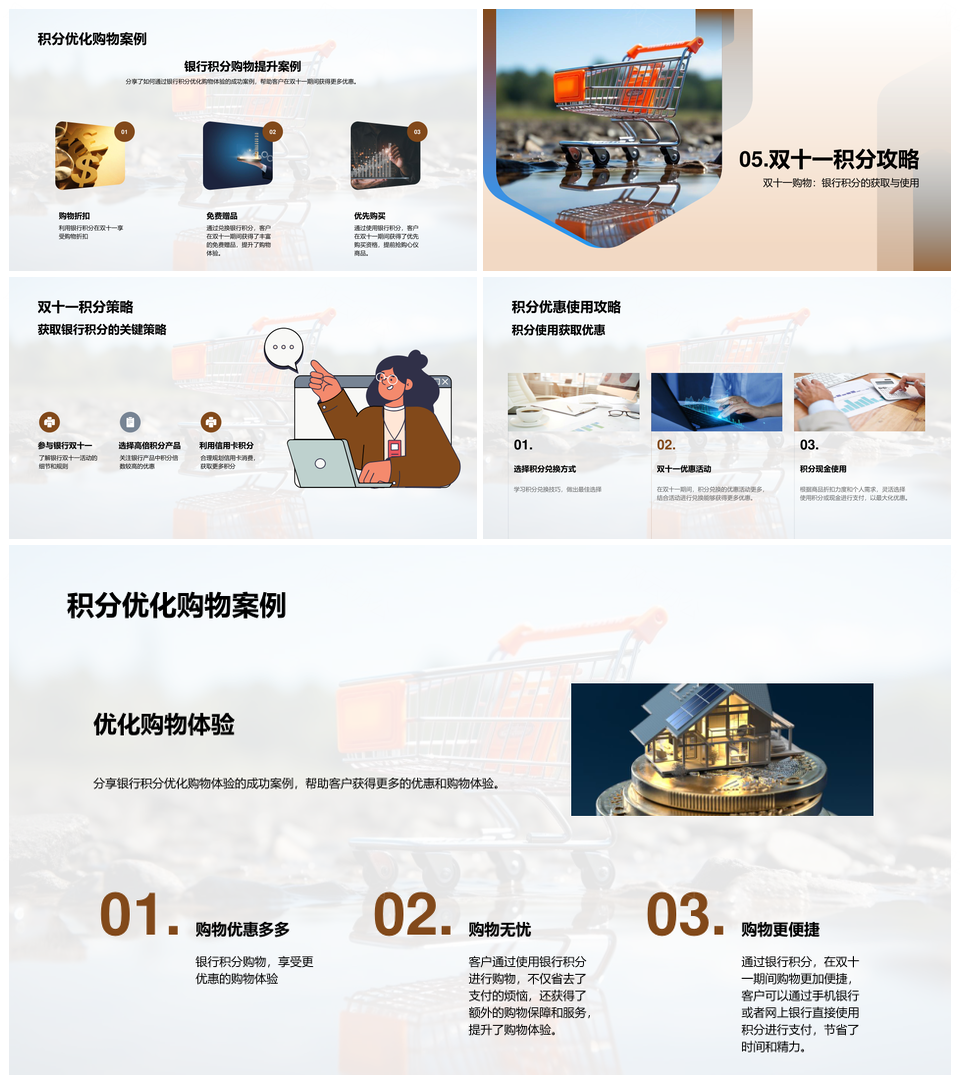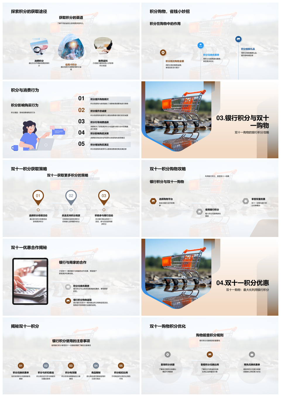 双十一银行积分营销策略助力商家合作优惠购物消费PPT模板推荐