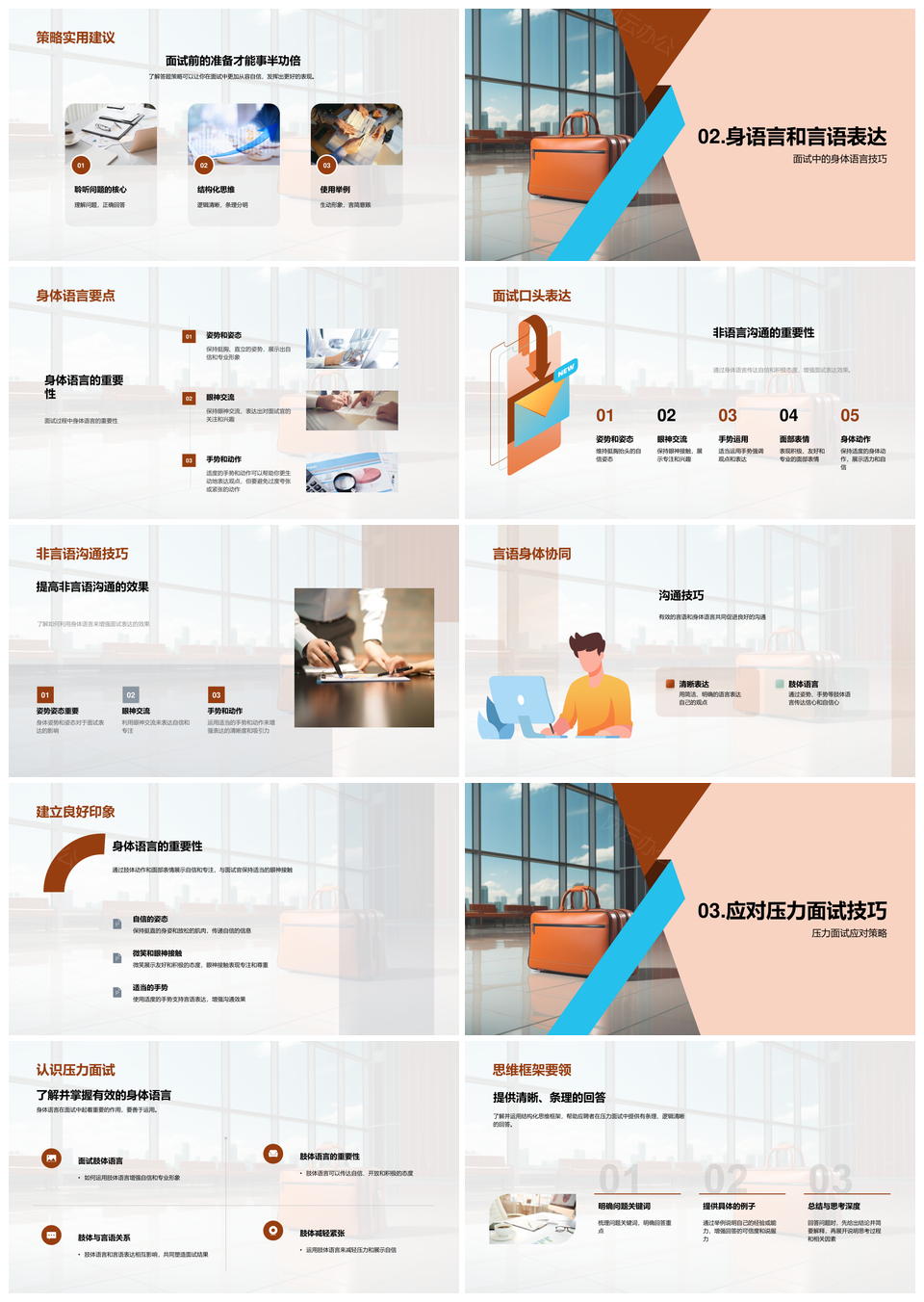 这是一张面试成功技巧策略求职简历招聘人资应对压力身体语言PPT模板,包含面试、成功、技巧、策略、求职、简历、招聘、人资、应对、压力、身体语言等主题内容,也可用作面试成功技巧策略、求职简历招聘人资、应对压力身体语言、面试成功求职简历、求职招聘应对压力、成功技巧策略求职、简历招聘人资应对、应对压力身体技巧、面试技巧策略求职、招聘人资身体语言、成功求职简历策略、人资应对压力管理、面试求职应对压力、求职简历身体语言、策略应对压力技巧等PPT场景使用。 风云办公提供的面试成功技巧策略求职简历招聘人资应对压力身体语言PPT模板,下载格式为pptx,一共33页,作品中文字及图均可以修改和编辑,图片更改请在作品中右键图片并更换,文字修改请直接点击文字进行修改。