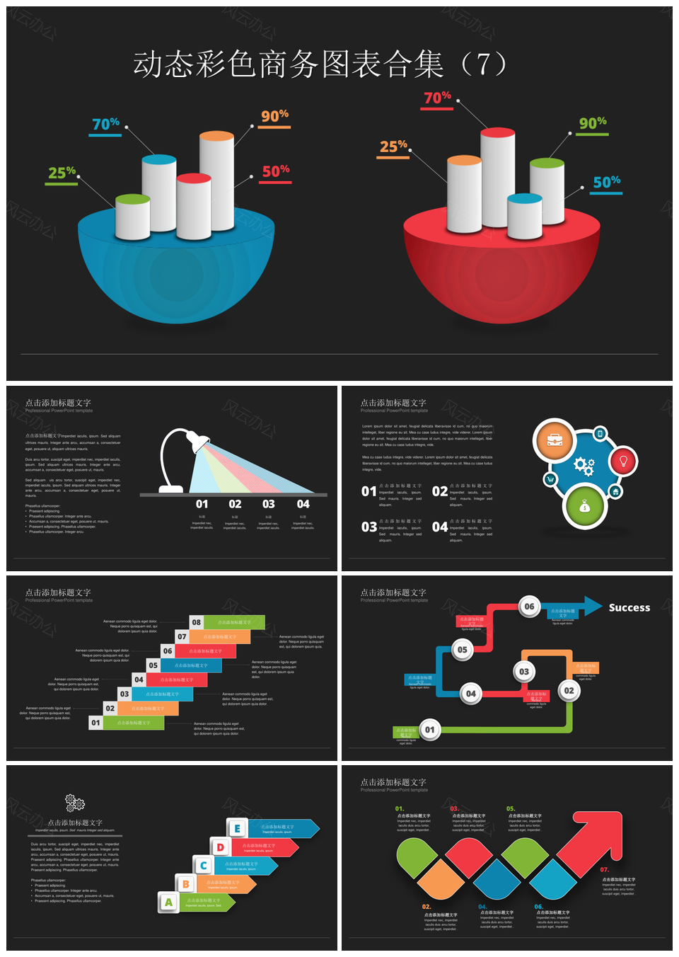 彩色动态精美设计多图表年度总结商业计划书商务PPT模板
