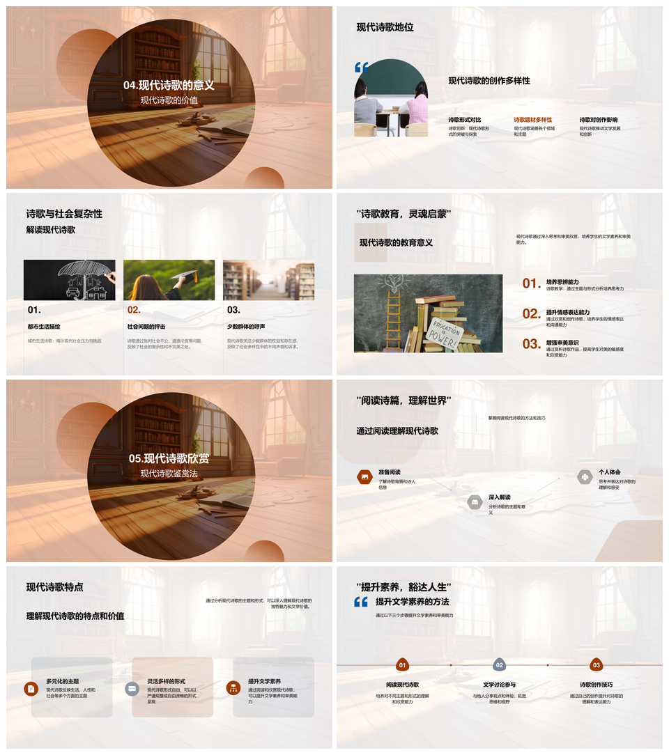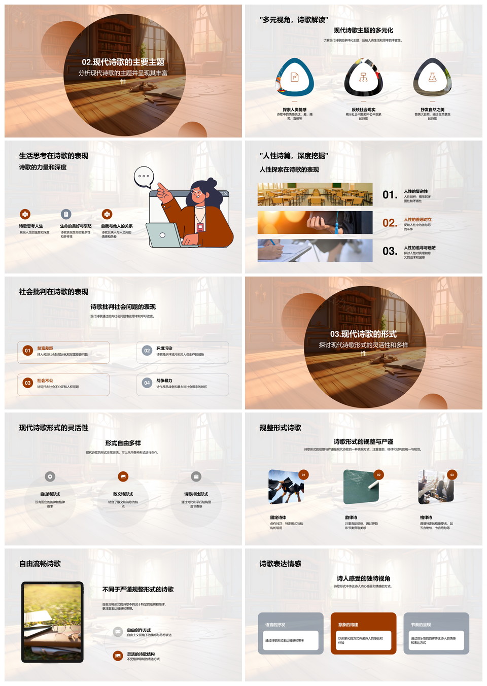 现代诗歌发展主题形式人性探索赏析教育PPT模板推荐