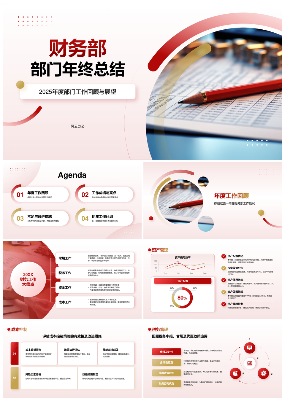 这是一张2025财务部年终总结业绩预算成本财报风控内审汇报PPT模板,包含2025、财务部、年终总结、业绩、预算、成本、财报、风控、内审、汇报等主题内容,也可用作2025财务部年终总结业绩预算、财务部年终总结业绩预算成本、年终总结业绩预算成本财报、业绩预算成本财报风控、预算成本财报风控内审、成本财报风控内审汇报、2025财务部预算成本财报风控、财务部年终总结成本财报内审、年终总结业绩风控内审汇报、2025财务部业绩财报内审、财务部预算风控内审汇报、年终总结成本财报风控、业绩预算财报内审、预算风控内审汇报、成本财报内审汇报等PPT场景使用。 风云办公提供的2025财务部年终总结业绩预算成本财报风控内审汇报PPT模板,下载格式为pptx,一共20页,作品中文字及图均可以修改和编辑,图片更改请在作品中右键图片并更换,文字修改请直接点击文字进行修改。