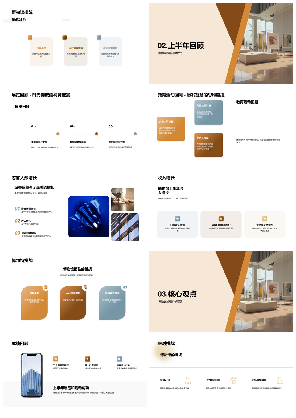 博物馆展览教育游客收入挑战团队合作营销突破PPT模板推荐