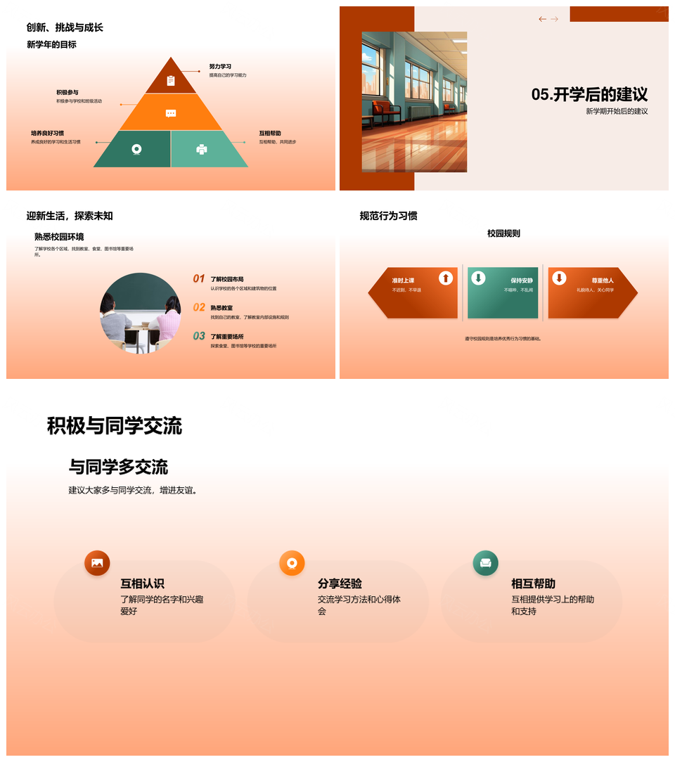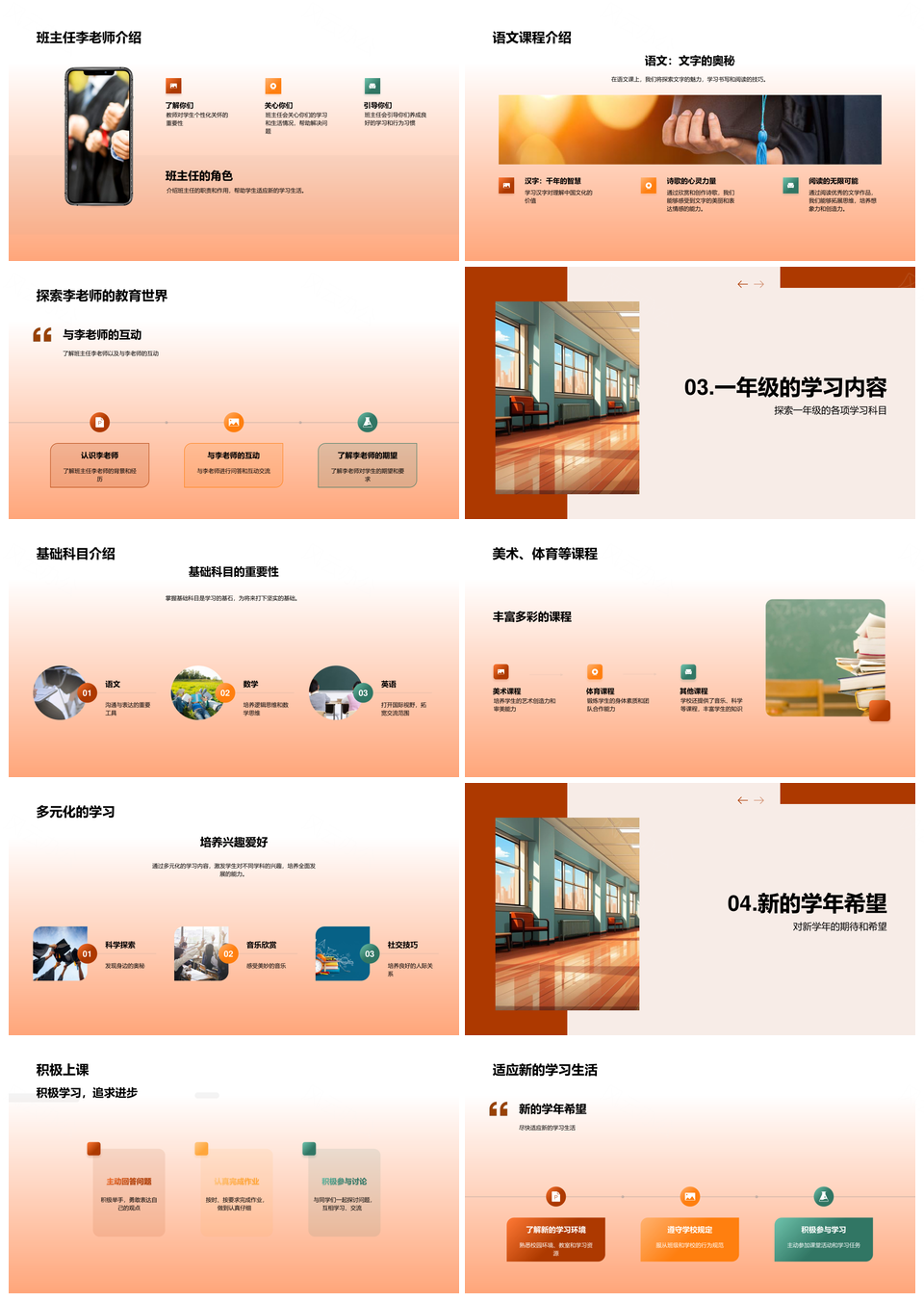 这是一张一年级新篇章融入校园历史文化优师多元建筑PPT模板,包含一年级、新篇章、融入、校园、历史文化、优师、多元、建筑等主题内容,也可用作一年级新篇章融入校园历史文化、新篇章融入校园历史文化、融入校园历史文化优师、校园历史文化优师多元、历史文化优师多元建筑、一年级新篇章融入校园、新篇章融入校园历史、融入校园历史文化、一年级新篇章融入、新篇章融入校园、融入校园历史、校园历史文化、历史文化优师、优师多元建筑、多元建筑新篇章等PPT场景使用。 风云办公提供的一年级新篇章融入校园历史文化优师多元建筑PPT模板,下载格式为pptx,一共23页,作品中文字及图均可以修改和编辑,图片更改请在作品中右键图片并更换,文字修改请直接点击文字进行修改。
