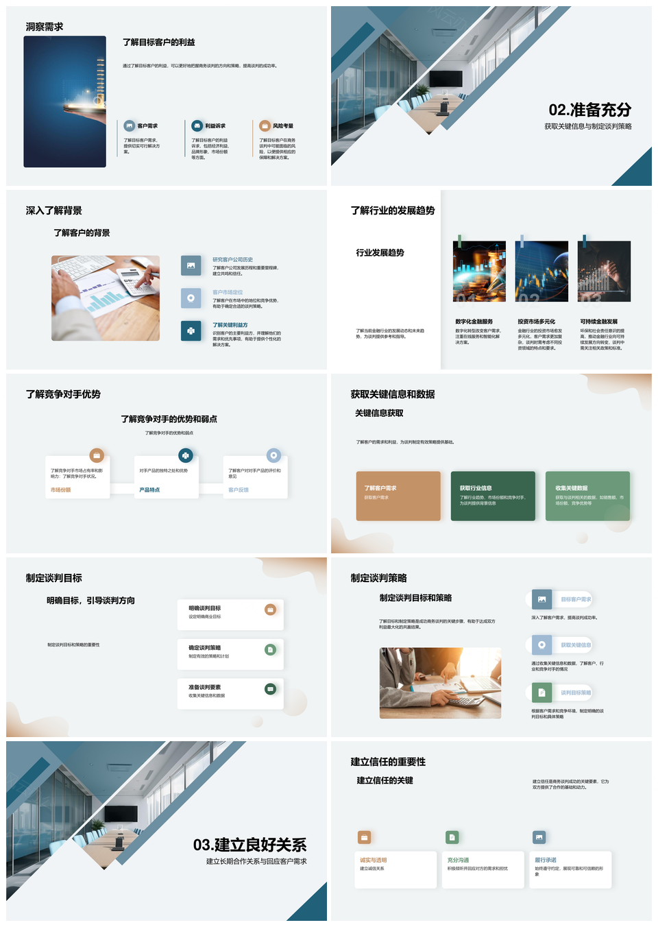 这是一张金融高效商务谈判技巧瞄准目标客户需求PPT模板,包含金融、高效、商务、谈判、技巧、瞄准、目标、客户、需求等主题内容,也可用作高效商务谈判技巧、瞄准目标客户需求、金融高效商务谈判、商务谈判技巧瞄准、谈判技巧瞄准目标、技巧瞄准目标客户、高效商务谈判、瞄准目标客户、目标客户需求、商务谈判技巧、金融高效商务、高效商务、商务谈判、谈判技巧、瞄准目标等PPT场景使用。 风云办公提供的金融高效商务谈判技巧瞄准目标客户需求PPT模板,下载格式为pptx,一共38页,作品中文字及图均可以修改和编辑,图片更改请在作品中右键图片并更换,文字修改请直接点击文字进行修改。