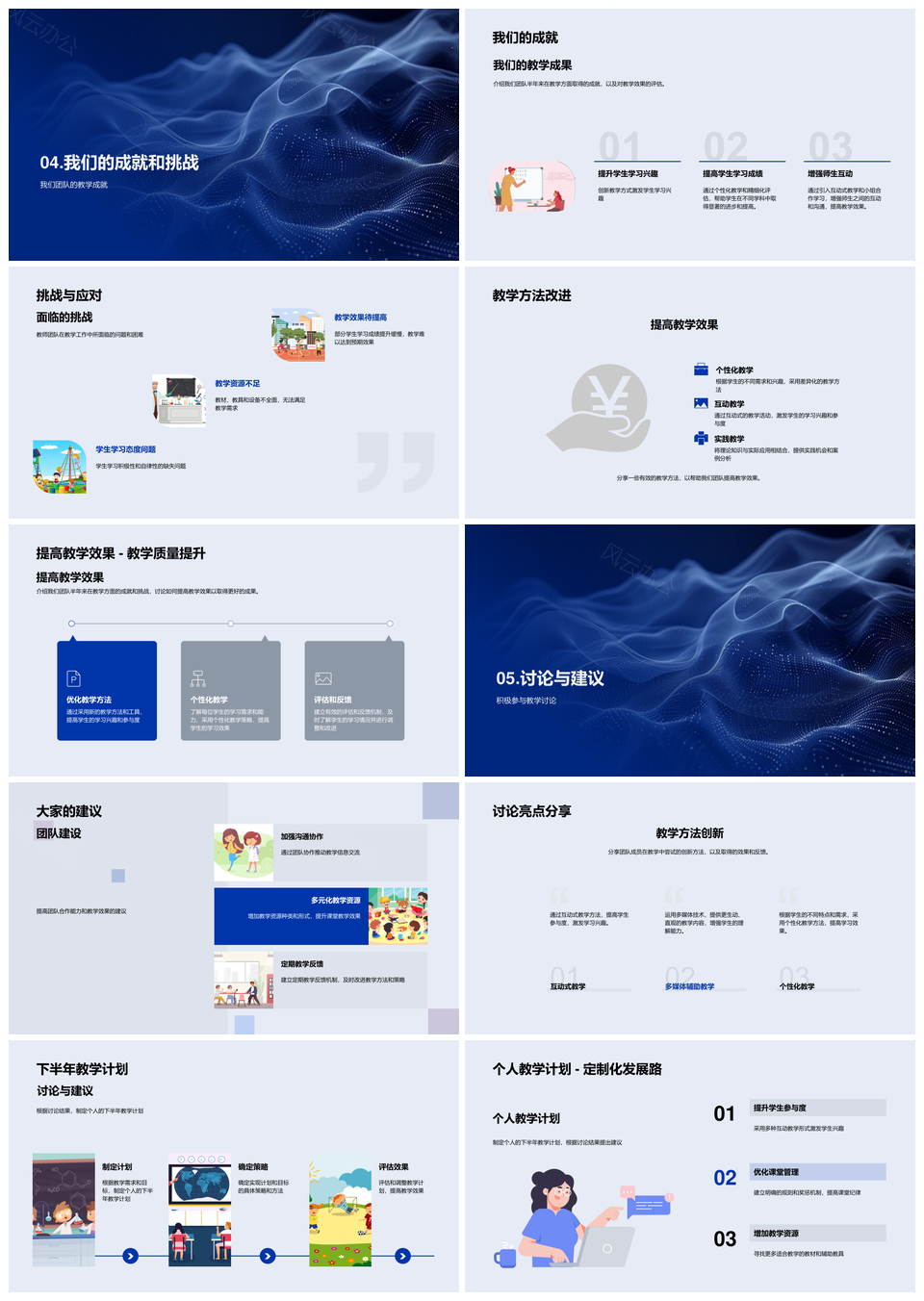 风云办公提供的教学半年总结目标方法成果计划PPT模板,下载格式为pptx,一共28页,作品中文字及图均可以修改和编辑,图片更改请在作品中右键图片并更换,文字修改请直接点击文字进行修改。