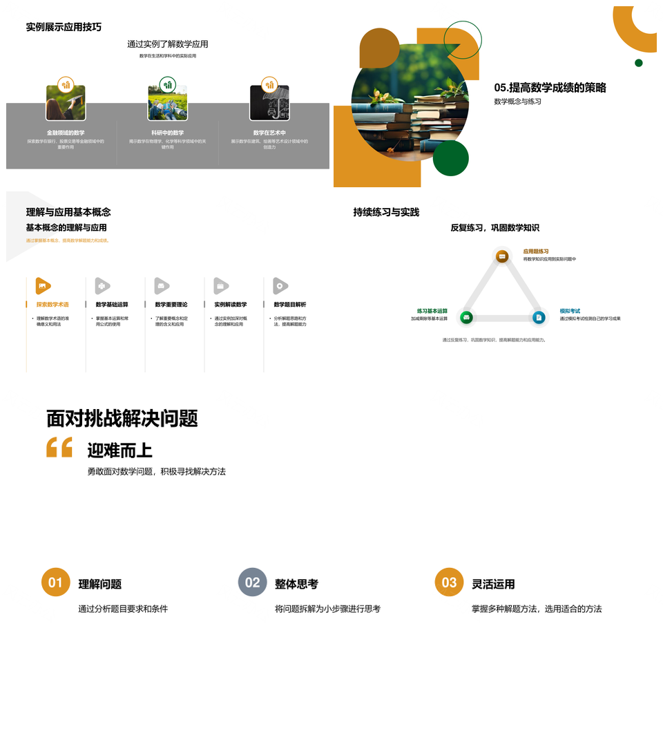 风云办公提供的数学概念定理应用与解题公式运算精髓PPT模板,下载格式为pptx,一共23页,作品中文字及图均可以修改和编辑,图片更改请在作品中右键图片并更换,文字修改请直接点击文字进行修改。