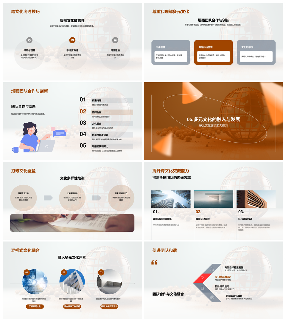 这是一张全球化科技数码跨文化商务礼仪团队创新PPT模板,包含全球化、科技、数码、跨文化、商务礼仪、团队、创新等主题内容,也可用作全球化科技数码跨文化商务礼仪、跨文化商务礼仪团队创新、全球化科技数码商务礼仪、科技数码跨文化商务礼仪、数码跨文化商务礼仪团队、商务礼仪团队创新全球化、跨文化商务礼仪创新团队、科技数码商务礼仪创新、全球化数码跨文化创新、跨文化团队创新商务礼仪、全球化科技跨文化创新、科技数码跨文化创新、跨文化商务礼仪创新、数码商务礼仪团队、团队创新科技数码等PPT场景使用。 风云办公提供的全球化科技数码跨文化商务礼仪团队创新PPT模板,下载格式为pptx,一共26页,作品中文字及图均可以修改和编辑,图片更改请在作品中右键图片并更换,文字修改请直接点击文字进行修改。