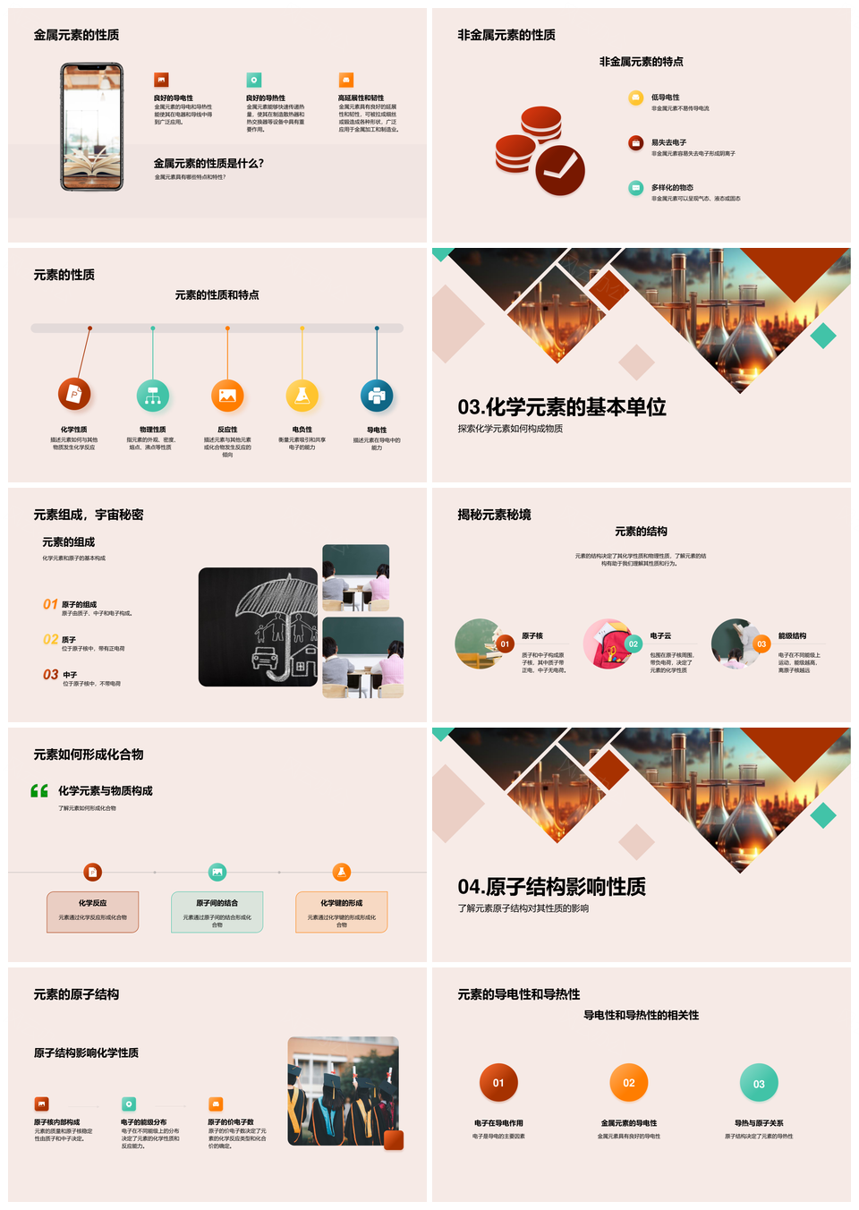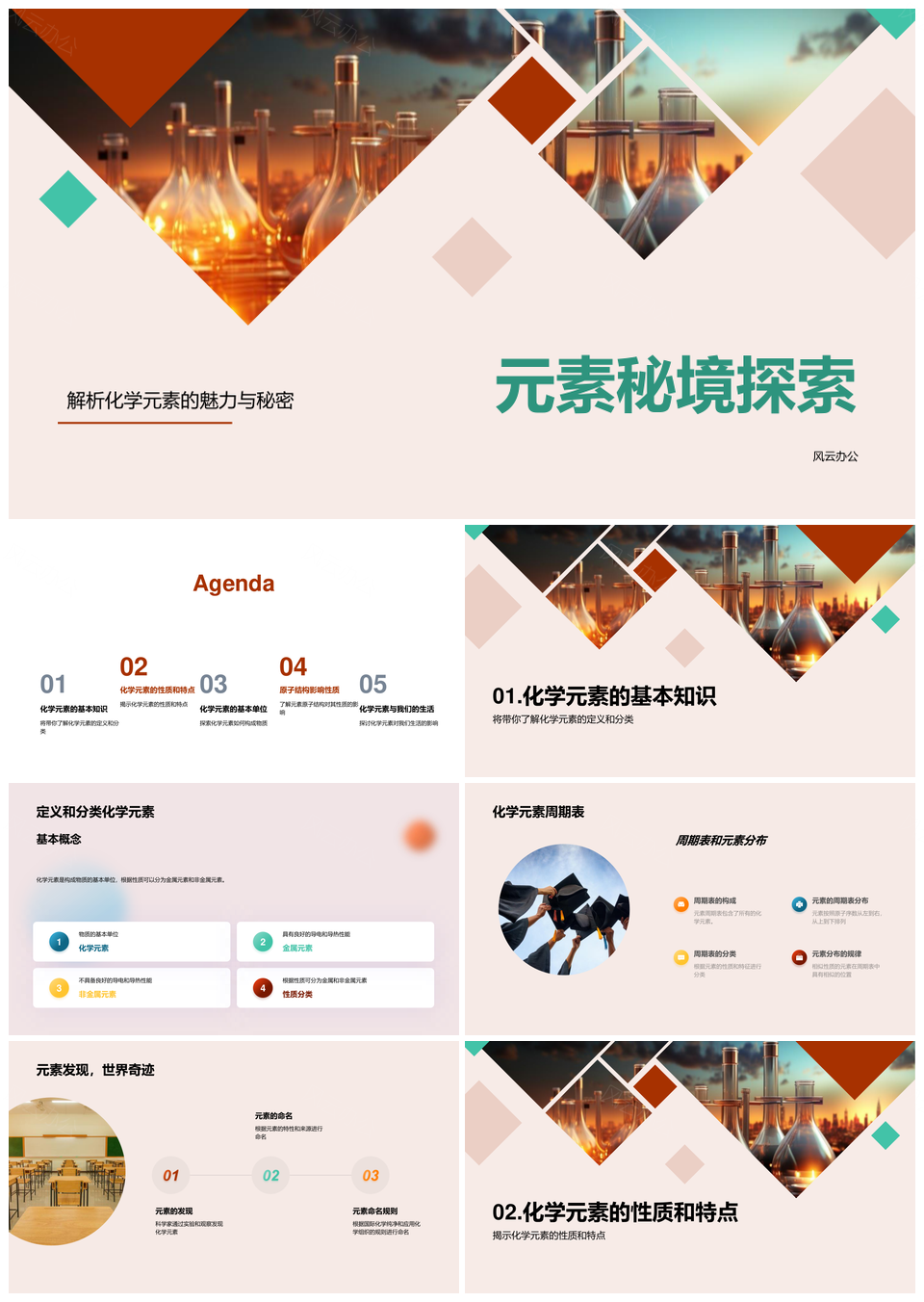 风云办公提供的化学元素秘境金属非金属结构原子探析PPT模板,下载格式为pptx,一共23页,作品中文字及图均可以修改和编辑,图片更改请在作品中右键图片并更换,文字修改请直接点击文字进行修改。