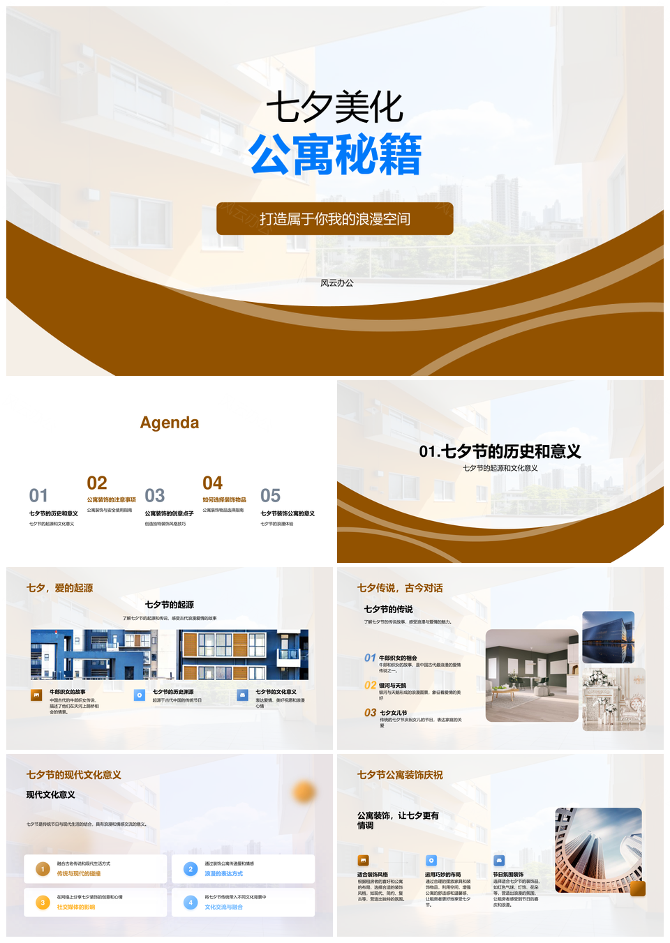 风云办公提供的七夕公寓浪漫装饰安全攻略PPT模板,下载格式为pptx,一共24页,作品中文字及图均可以修改和编辑,图片更改请在作品中右键图片并更换,文字修改请直接点击文字进行修改。