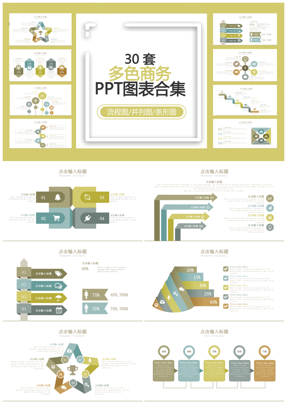 25套缤纷多色商务实用图表合集PPT模板
