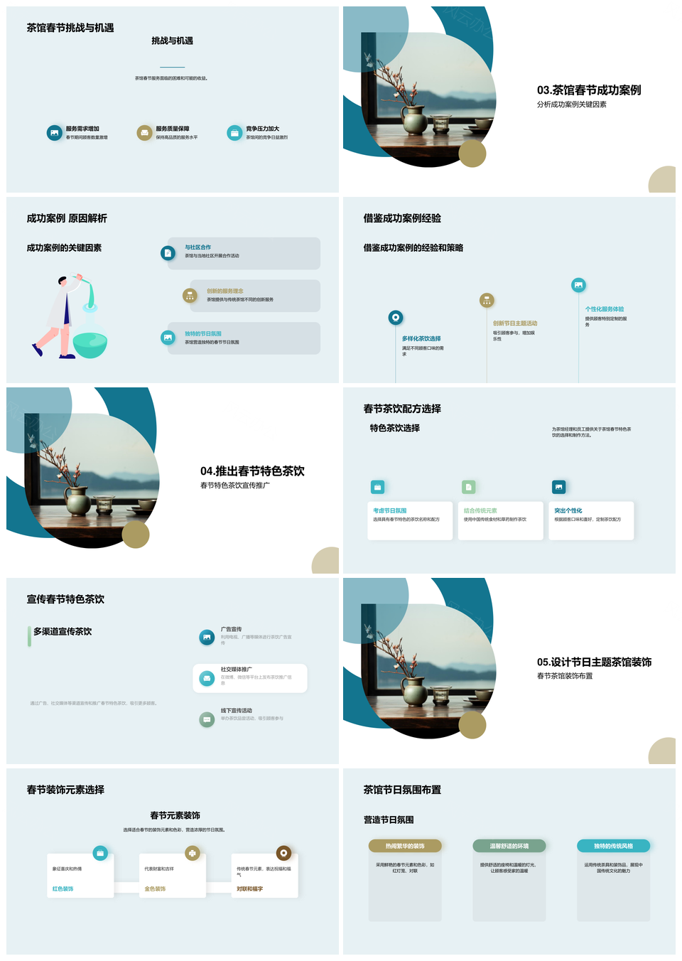 风云办公提供的茶馆春节茶具传统习俗特色服务策划PPT模板,下载格式为pptx,一共36页,作品中文字及图均可以修改和编辑,图片更改请在作品中右键图片并更换,文字修改请直接点击文字进行修改。