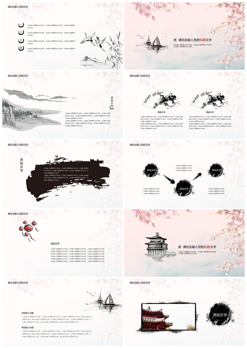 这是一张红色中国风桃花水墨PPT模板,包含红色、中国风、桃花、水墨等主题内容,也可用作红色中国风桃花水墨、中国风桃花水墨、红色中国风水墨、中国风红色桃花水墨、红色桃花水墨、中国风桃花、红色中国风、桃花水墨、中国风水墨、红色水墨、水墨桃花、红色桃花等PPT场景使用。 风云办公提供的红色中国风桃花水墨PPT模板,下载格式为pptx,一共21页,作品中文字及图均可以修改和编辑,图片更改请在作品中右键图片并更换,文字修改请直接点击文字进行修改。