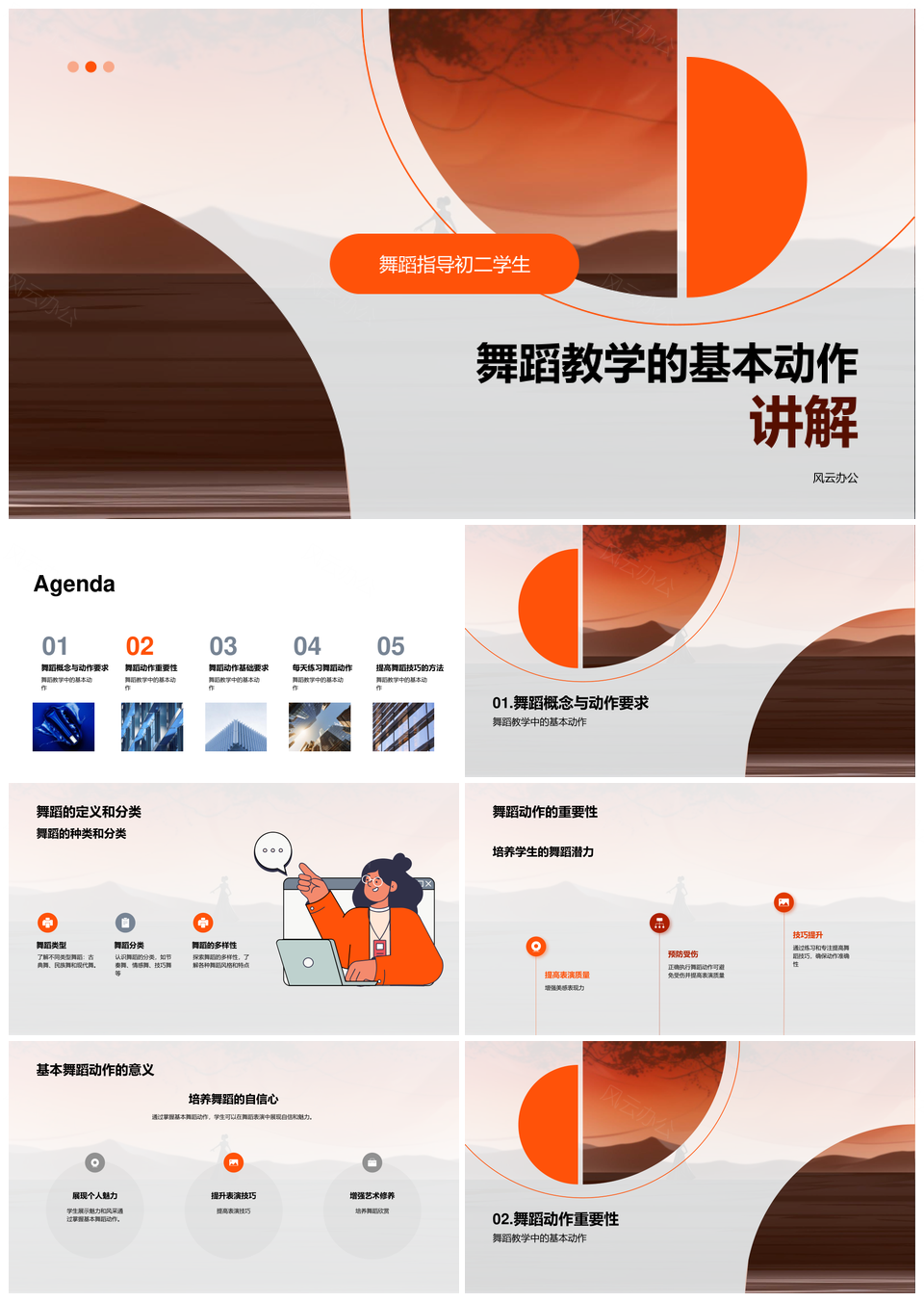 风云办公提供的初二学生舞蹈基本动作教学技巧解析PPT模板,下载格式为pptx,一共23页,作品中文字及图均可以修改和编辑,图片更改请在作品中右键图片并更换,文字修改请直接点击文字进行修改。
