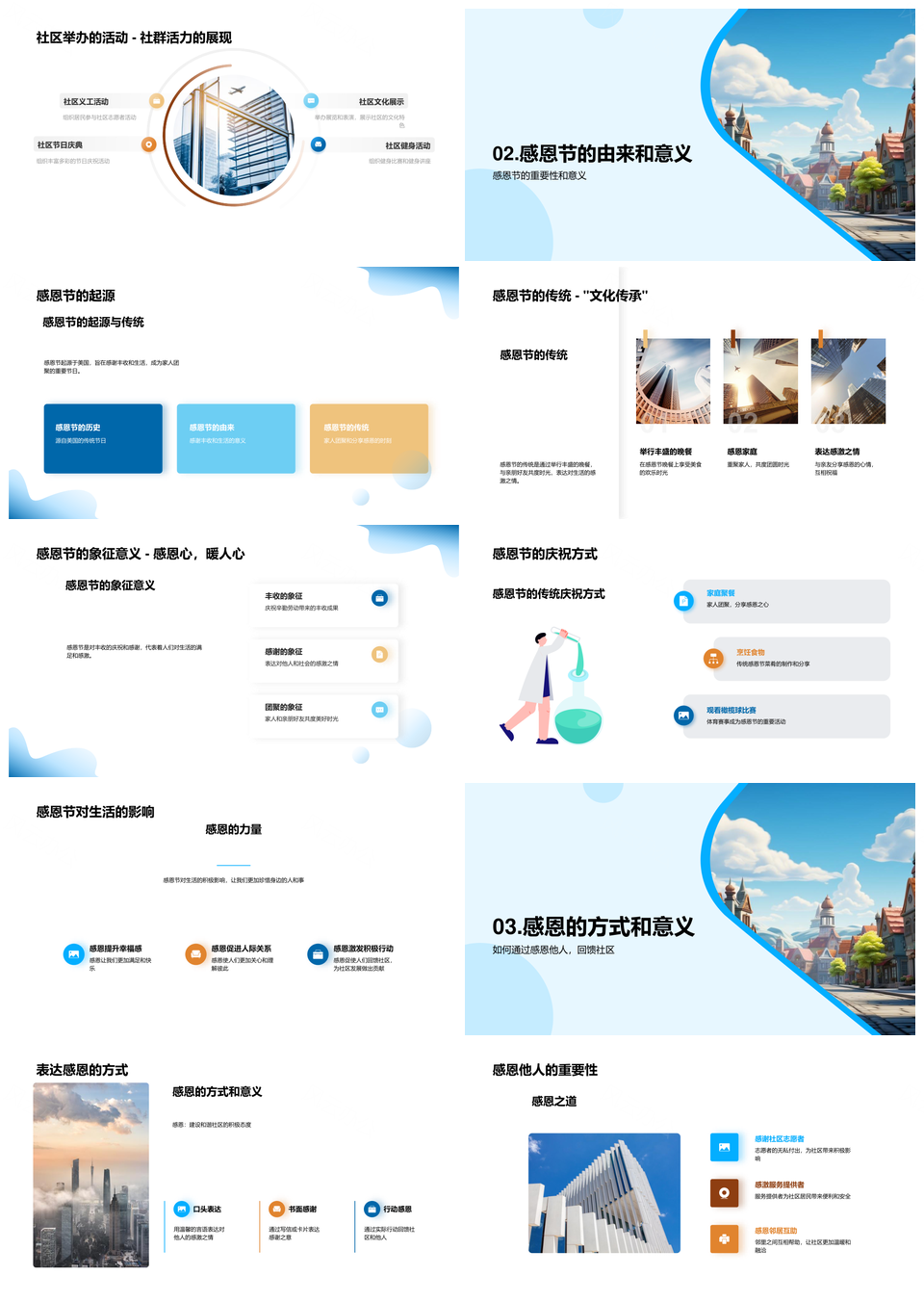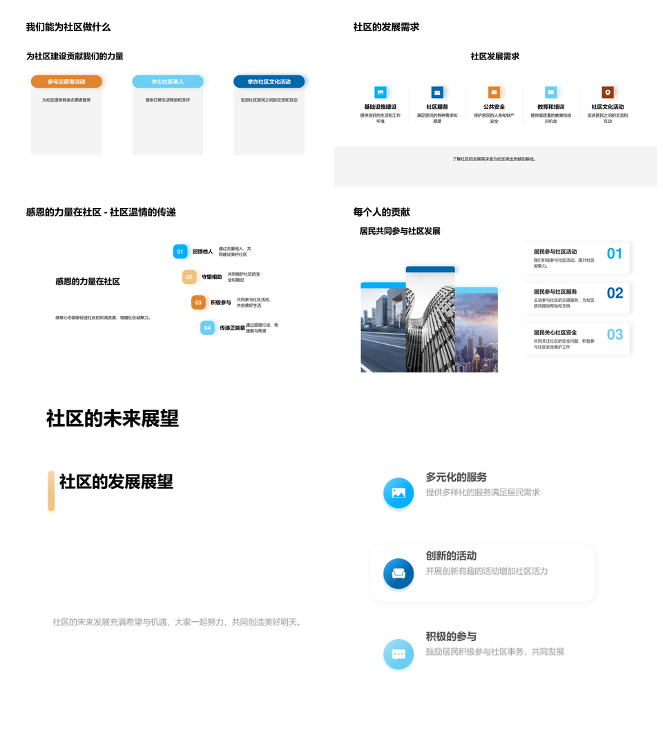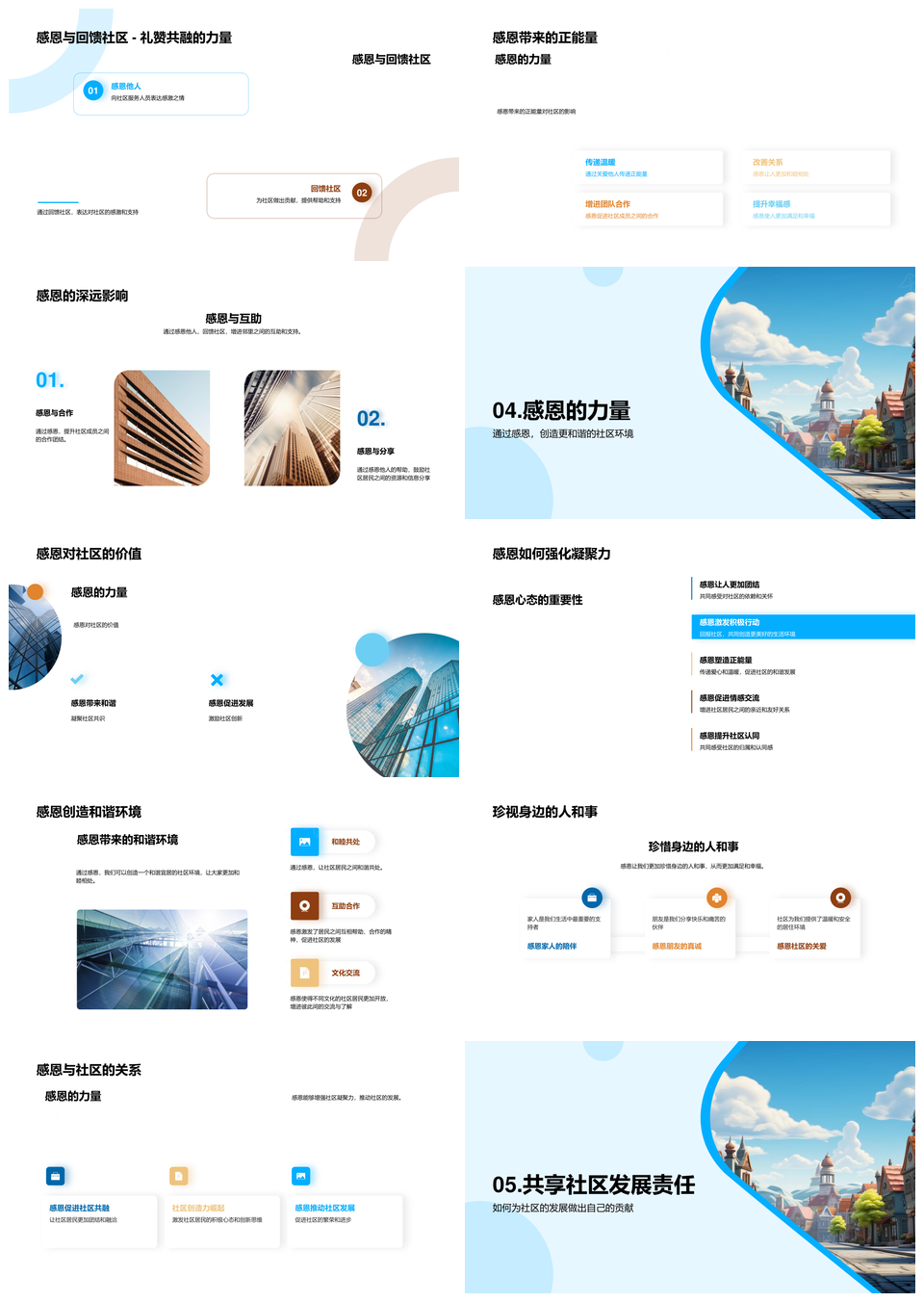 风云办公提供的感恩之力回馈社区共建发展PPT模板,下载格式为pptx,一共33页,作品中文字及图均可以修改和编辑,图片更改请在作品中右键图片并更换,文字修改请直接点击文字进行修改。
