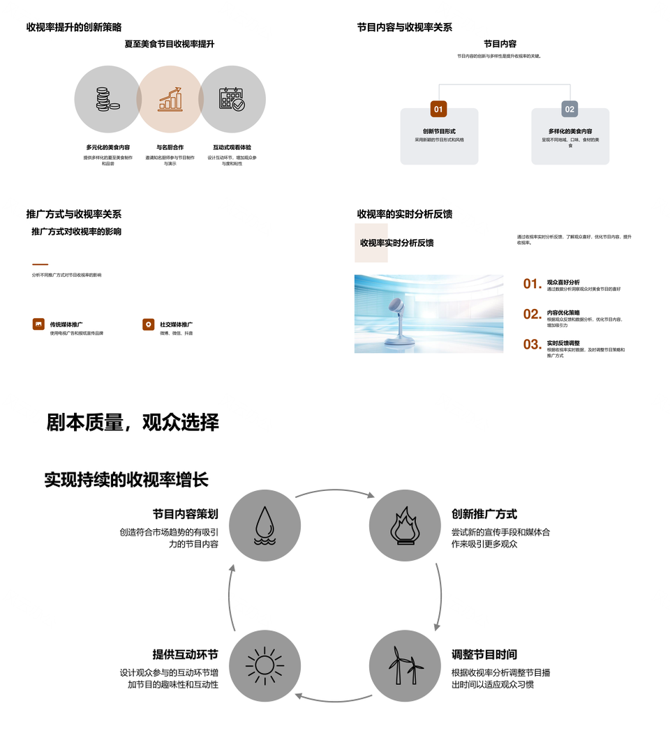 这是一张夏至美食节目制作推广历史文化灯笼收视提升PPT模板,包含夏至、美食节目、制作、推广、历史文化、灯笼、收视提升等主题内容,也可用作夏至美食节目制作、美食节目制作推广、节目制作推广历史、制作推广历史文化、推广历史文化灯笼、历史文化灯笼收视、灯笼收视提升、夏至美食节目、美食节目制作、节目制作推广、制作推广历史、推广历史文化、历史文化灯笼、夏至美食、美食节目等PPT场景使用。 风云办公提供的夏至美食节目制作推广历史文化灯笼收视提升PPT模板,下载格式为pptx,一共33页,作品中文字及图均可以修改和编辑,图片更改请在作品中右键图片并更换,文字修改请直接点击文字进行修改。