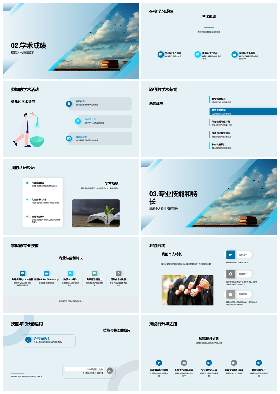 风云办公提供的求学发展学术成绩专业技能特长闪光点PPT模板,下载格式为pptx,一共29页,作品中文字及图均可以修改和编辑,图片更改请在作品中右键图片并更换,文字修改请直接点击文字进行修改。