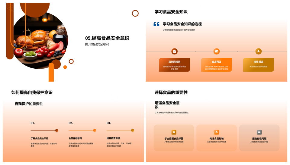 这是一张食品安全教育提升防护识标志合理选PPT模板,包含食品安全教育、提升、防护、识标志、合理选等主题内容,也可用作食品安全教育提升防护、教育提升防护标志、提升防护标志合理选、食品安全教育提升、教育提升防护、提升防护标志、防护标志合理选、食品安全教育防护、食品安全提升防护、教育防护标志合理选、食品安全教育、教育提升、提升防护、防护标志、标志合理选等PPT场景使用。