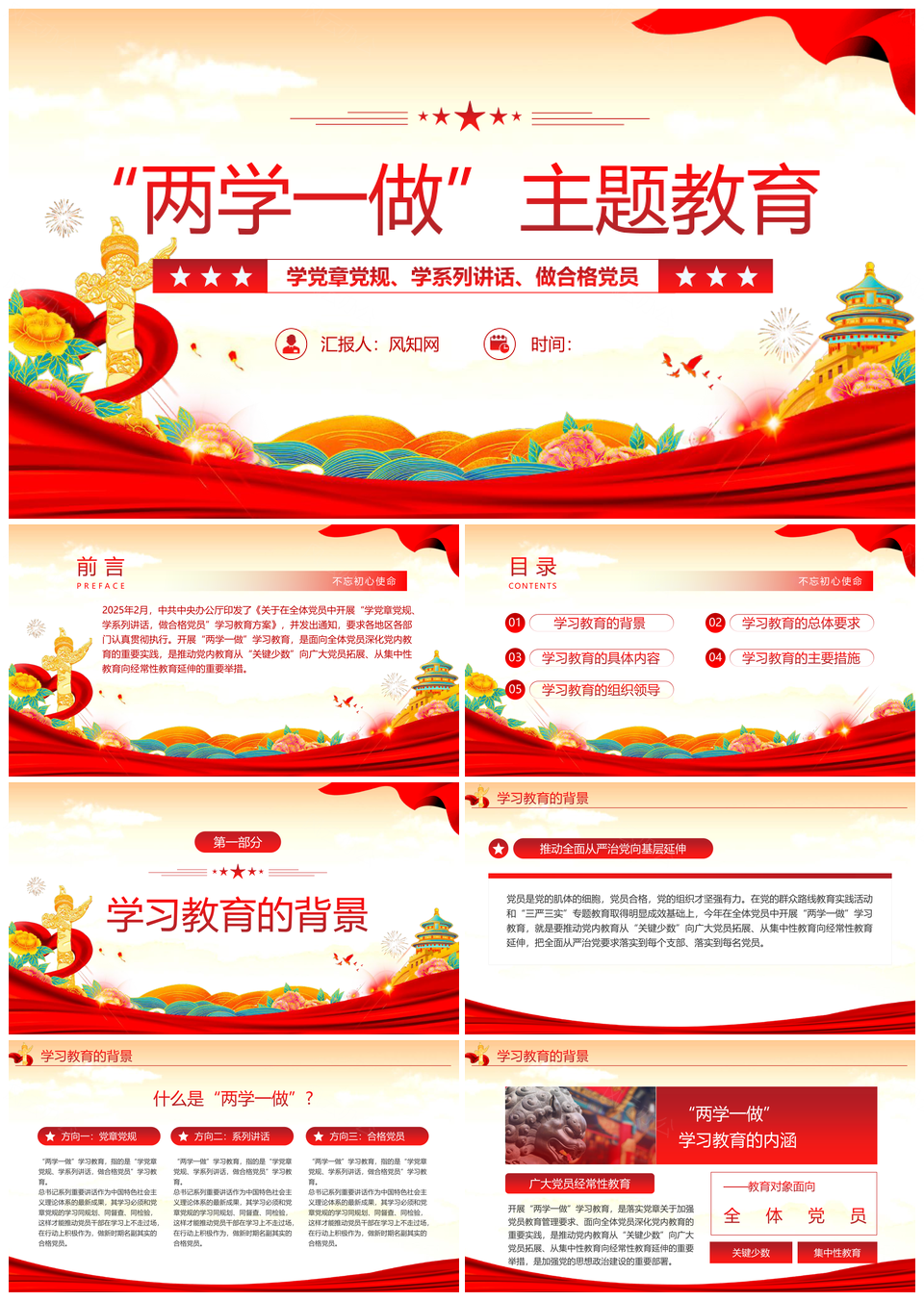 风云办公提供的2025红色党建两学一做主题教育党课课件,下载格式为pptx,一共32页,作品中文字及图均可以修改和编辑,图片更改请在作品中右键图片并更换,文字修改请直接点击文字进行修改。