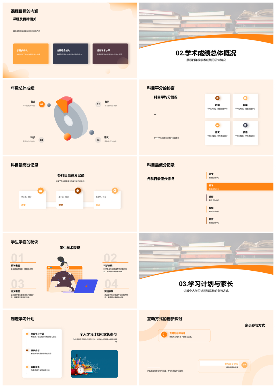 四年级学术提升策略家长指导学习计划课程PPT模板推荐