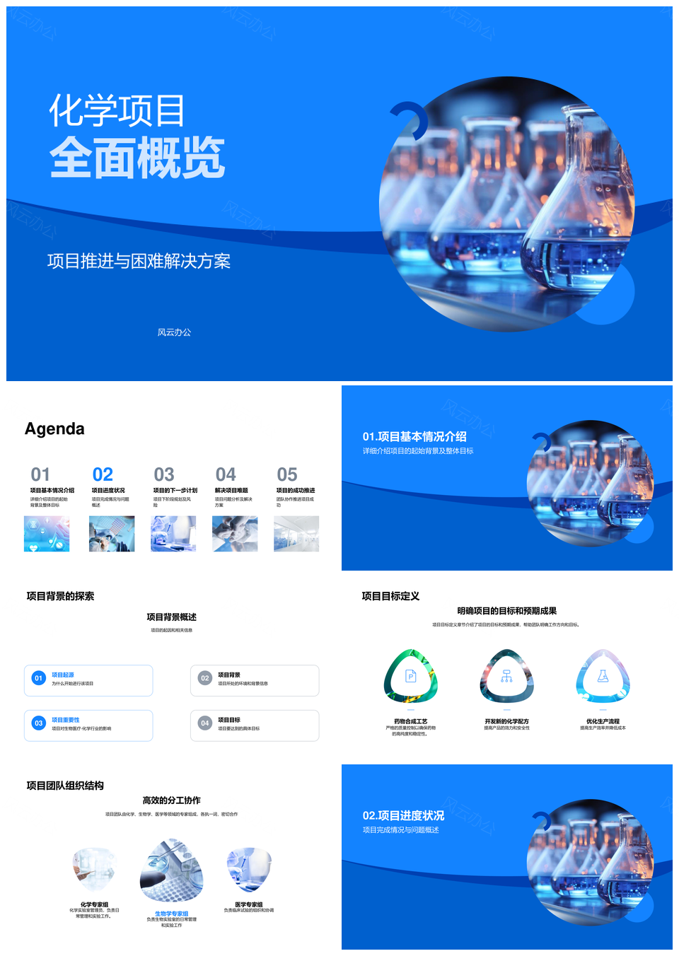 化学项目推进背景目标团队结构进度与解难PPT模板推荐