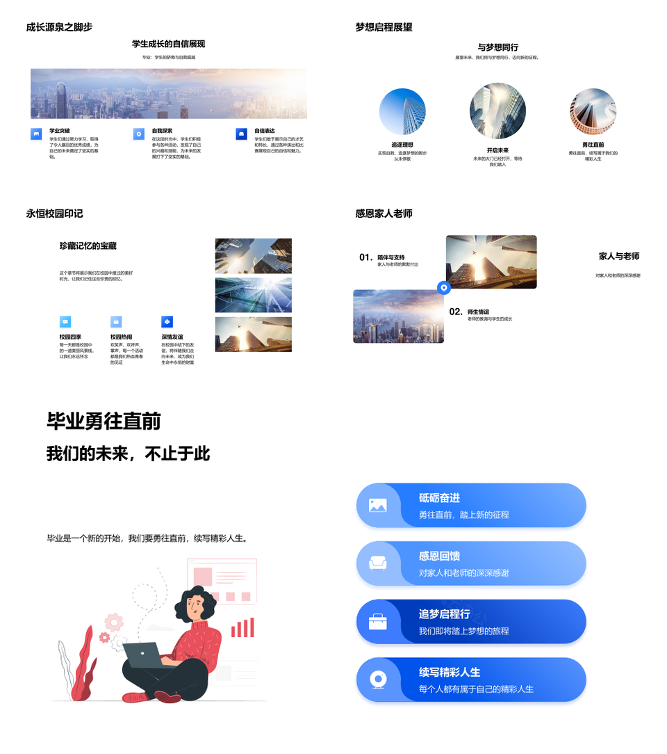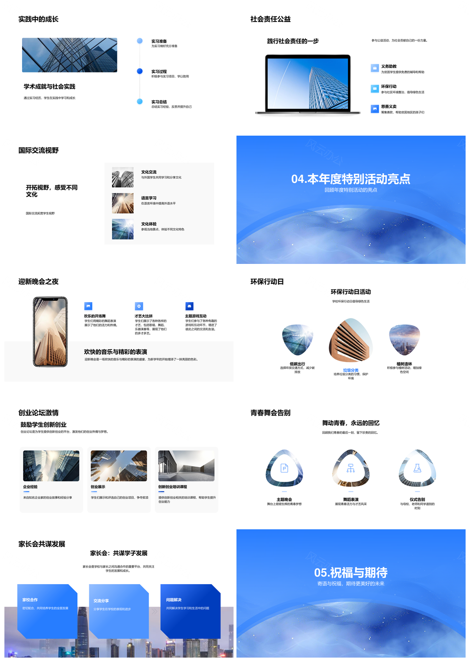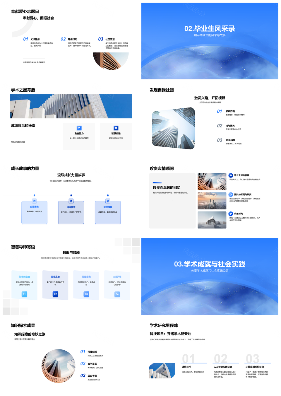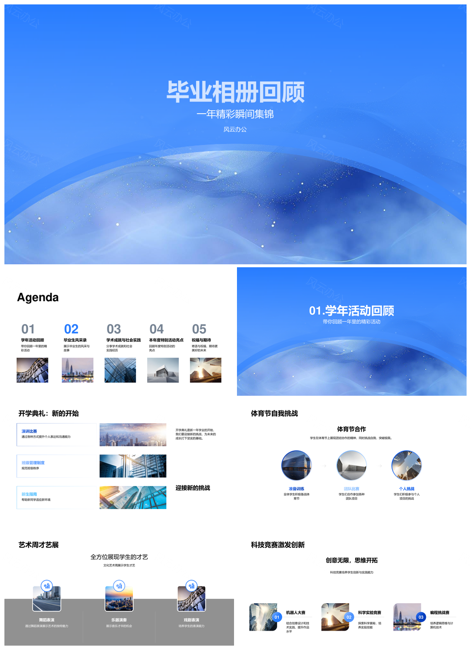 这是一张毕业相册一年学术体育文艺科技志愿回顾PPT模板,包含毕业相册、一年、学术、体育、文艺、科技、志愿、回顾等主题内容,也可用作毕业相册一年学术、毕业相册一年体育、毕业相册一年文艺、毕业相册一年科技、毕业相册一年志愿、毕业相册一年回顾、毕业相册学术体育、毕业相册体育文艺、毕业相册文艺科技、毕业相册科技志愿、毕业相册志愿回顾、一年学术体育文艺、学术体育文艺科技、体育文艺科技志愿、文艺科技志愿回顾等PPT场景使用。 风云办公提供的毕业相册一年学术体育文艺科技志愿回顾PPT模板,下载格式为pptx,一共33页,作品中文字及图均可以修改和编辑,图片更改请在作品中右键图片并更换,文字修改请直接点击文字进行修改。