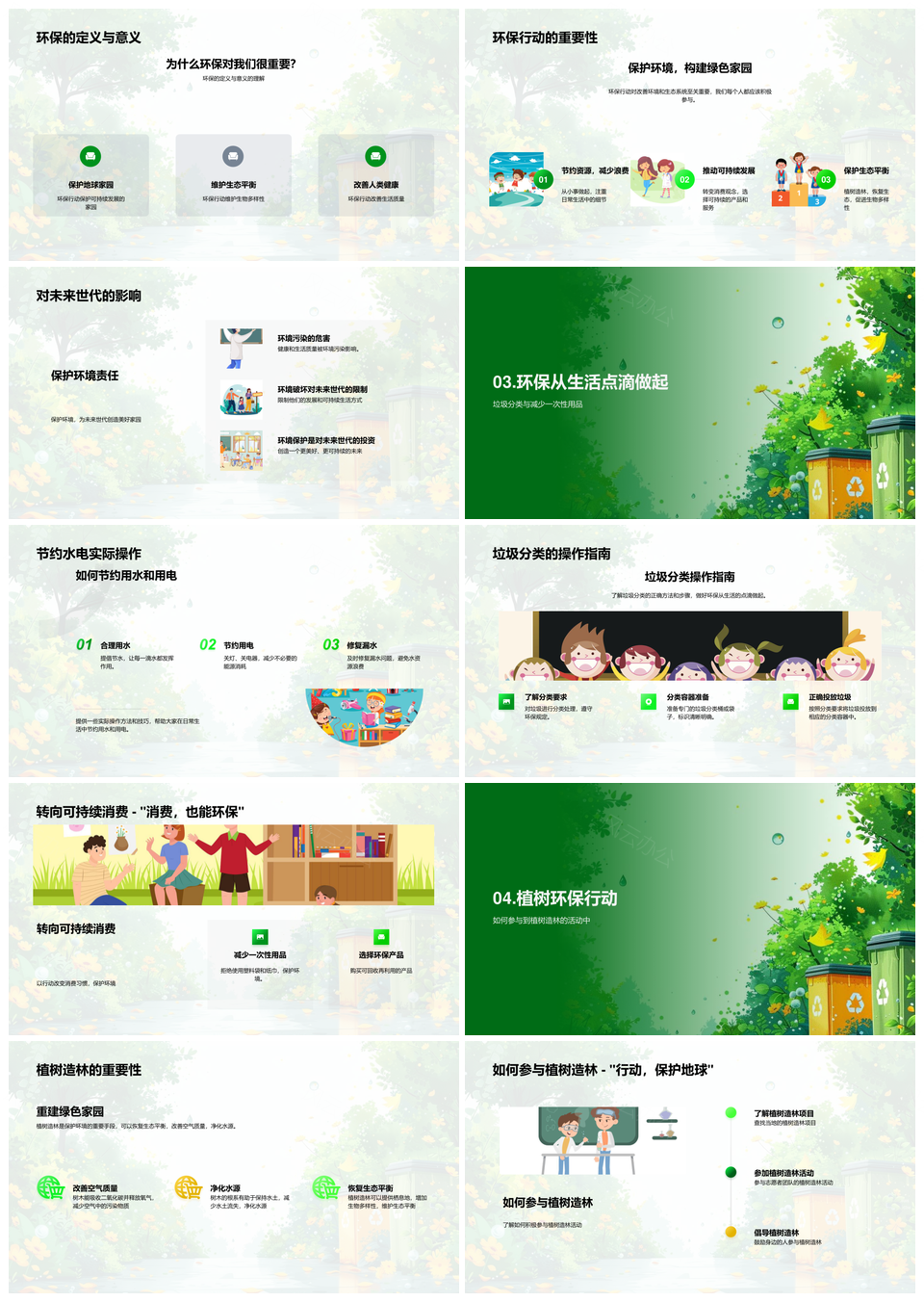 环保教育污染防治垃圾分类节水减塑可持续发展PPT模板