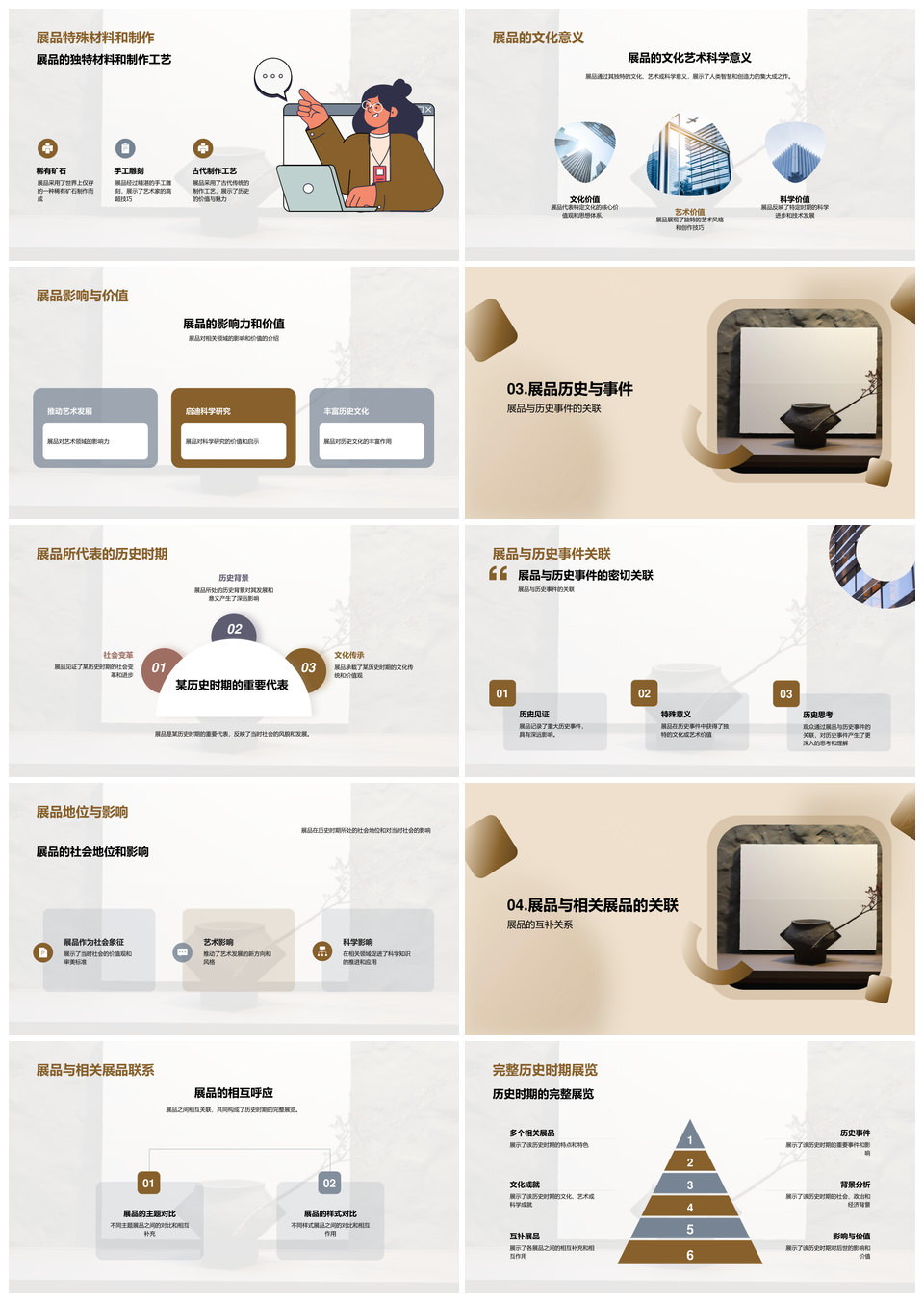 风云办公提供的博物馆文物历史制作背景探秘PPT模板,下载格式为pptx,一共23页,作品中文字及图均可以修改和编辑,图片更改请在作品中右键图片并更换,文字修改请直接点击文字进行修改。