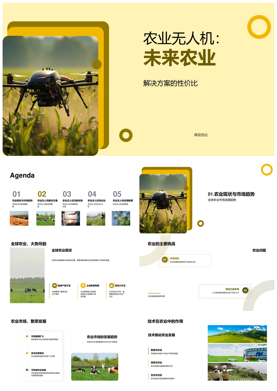 风云办公提供的农业无人机解决方案领航未来农业PPT模板,下载格式为pptx,一共24页,作品中文字及图均可以修改和编辑,图片更改请在作品中右键图片并更换,文字修改请直接点击文字进行修改。