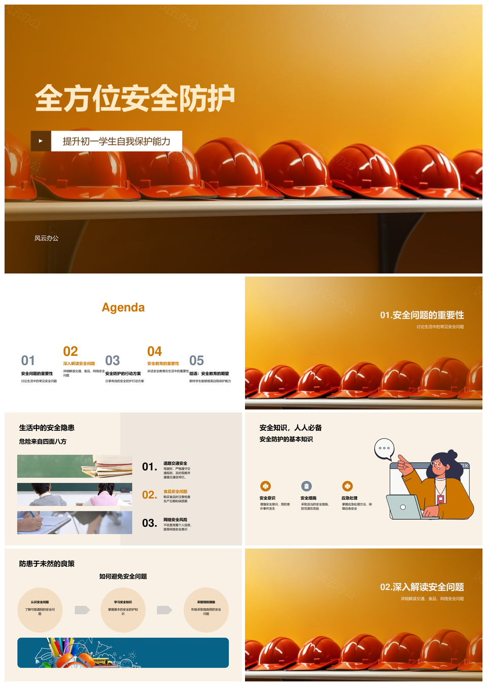 风云办公提供的全方位安全头盔防护安全PPT模板,下载格式为pptx,一共23页,作品中文字及图均可以修改和编辑,图片更改请在作品中右键图片并更换,文字修改请直接点击文字进行修改。