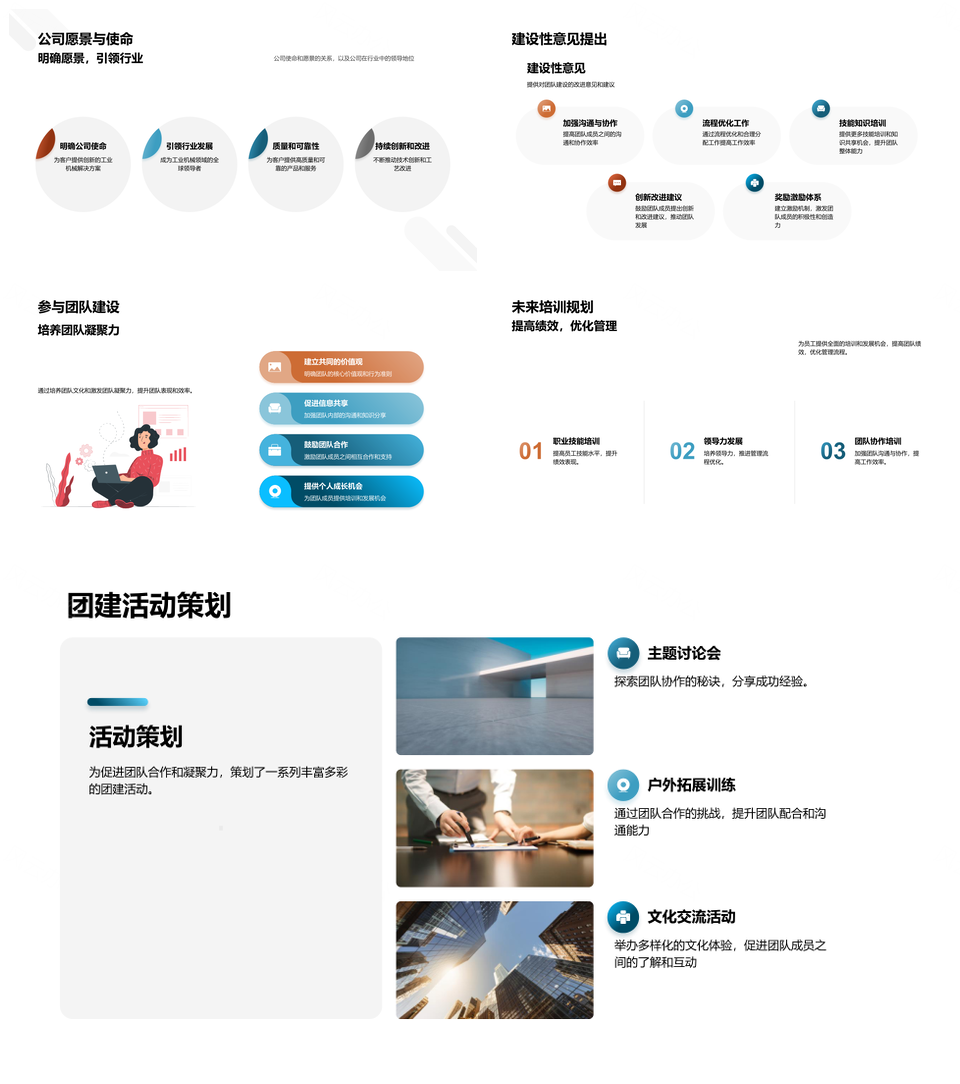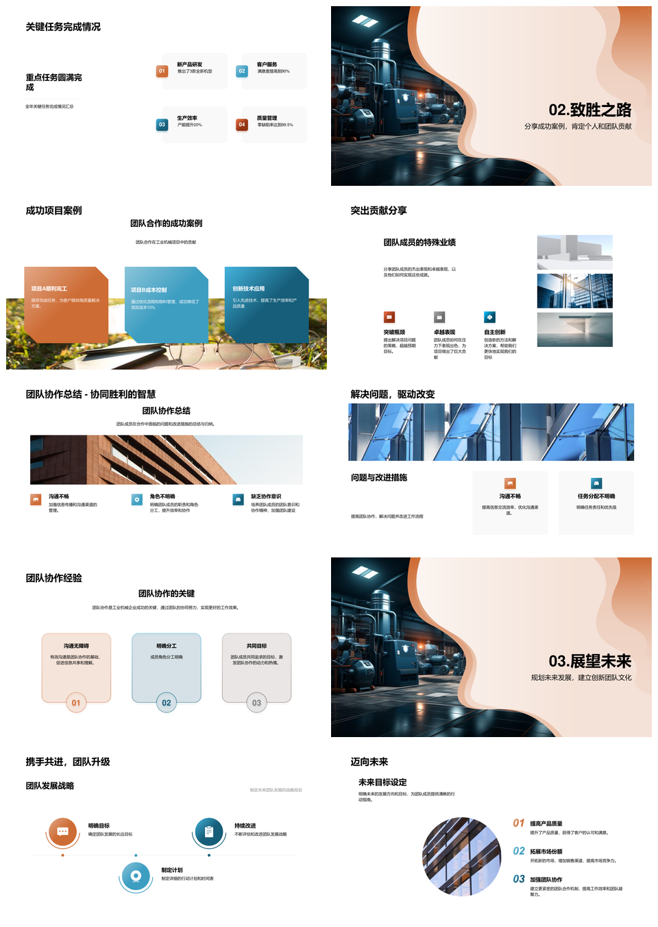 这是一张团队协作驱动工业机械年度重大项目使命达成PPT模板,包含团队协作、驱动、工业机械、年度、重大项目、使命、达成等主题内容,也可用作团队协作驱动工业机械重大项目、团队协作驱动工业机械年度、驱动工业机械年度重大项目、工业机械年度重大项目使命达成、团队协作驱动重大项目使命达成、驱动工业机械重大项目使命达成、工业机械重大项目使命达成、年度重大项目使命达成、团队协作驱动工业机械、团队协作驱动重大项目、驱动工业机械年度、驱动年度重大项目、工业机械年度重大项目、年度重大项目使命、工业机械重大项目使命等PPT场景使用。 风云办公提供的团队协作驱动工业机械年度重大项目使命达成PPT模板,下载格式为pptx,一共33页,作品中文字及图均可以修改和编辑,图片更改请在作品中右键图片并更换,文字修改请直接点击文字进行修改。