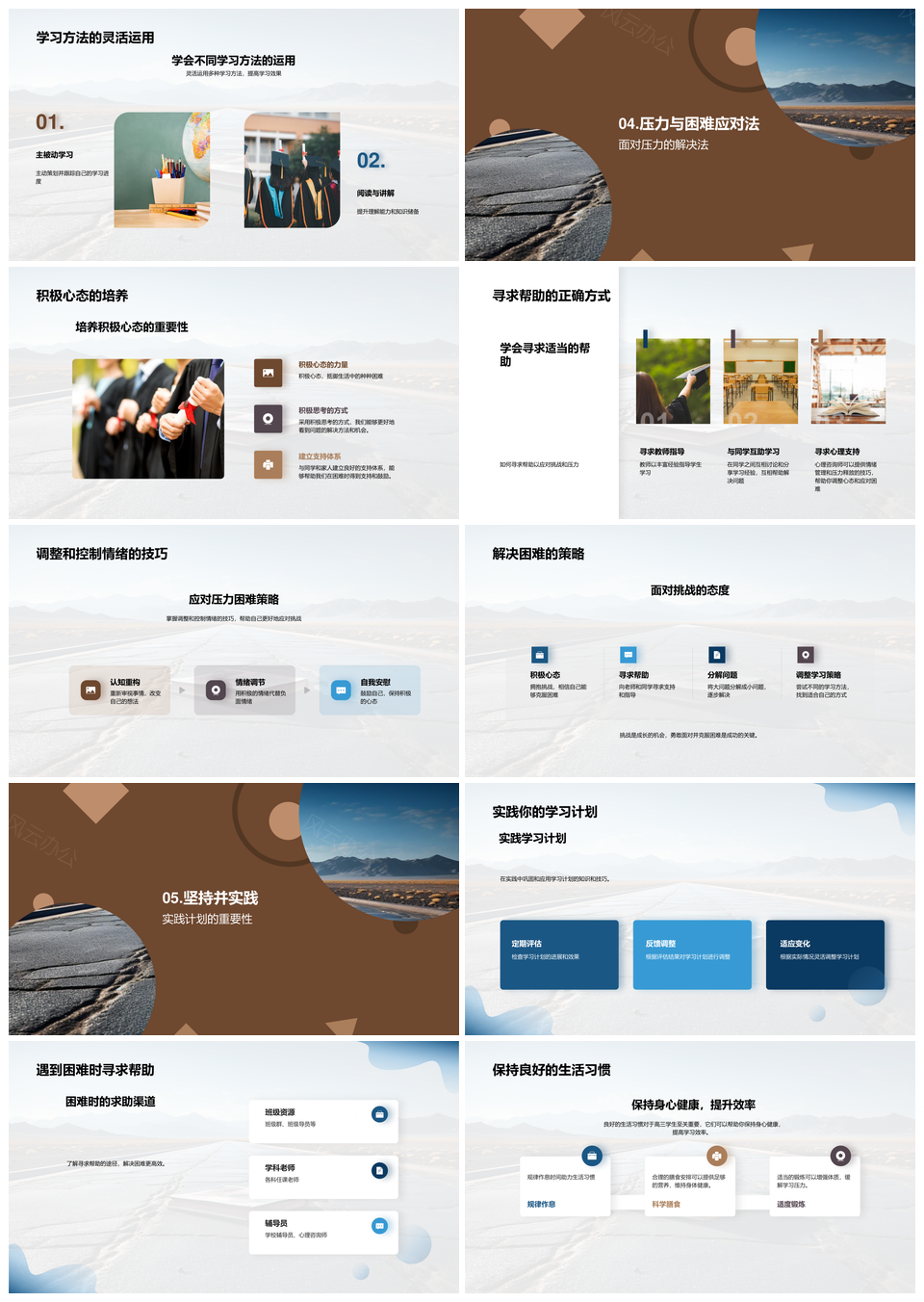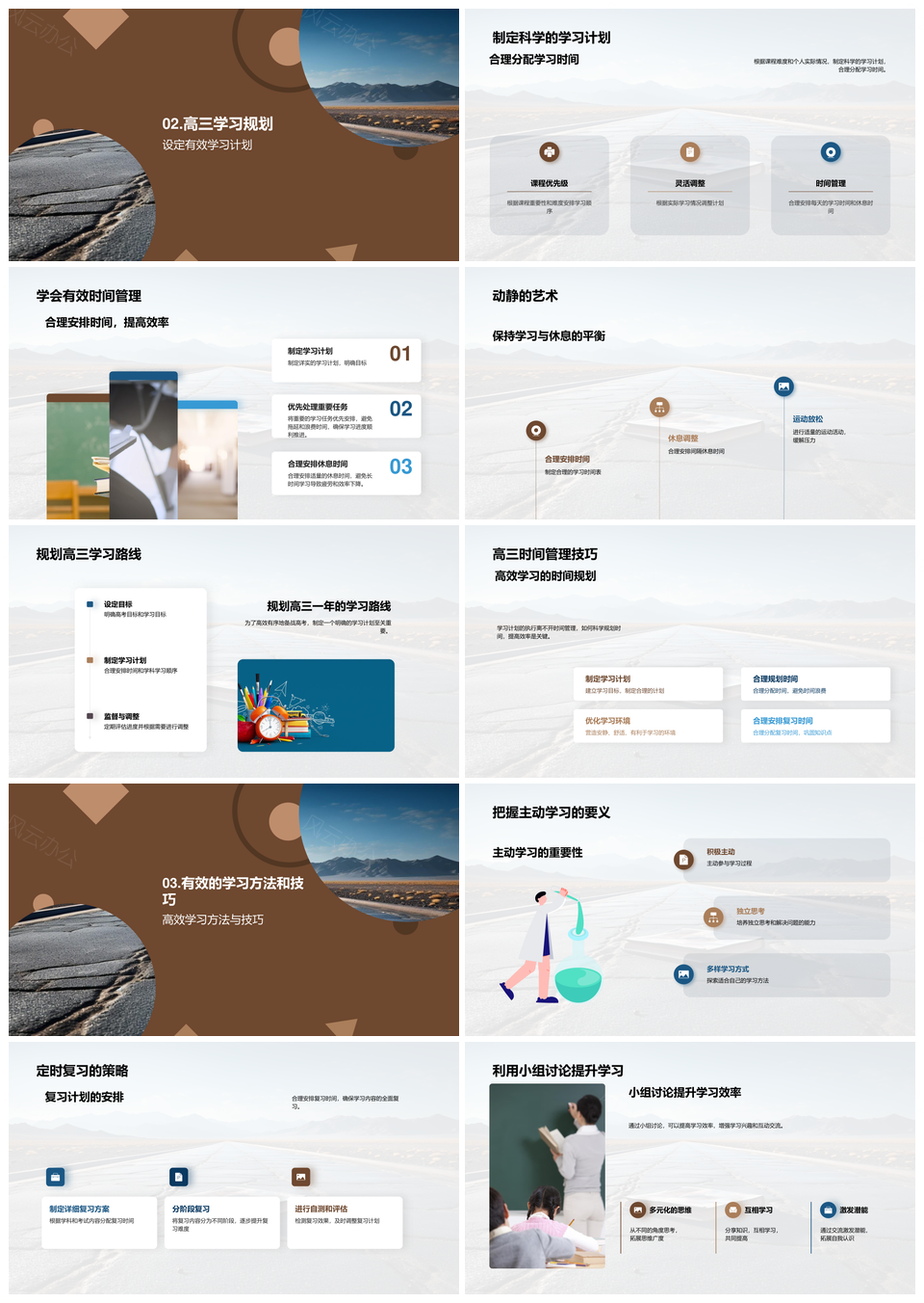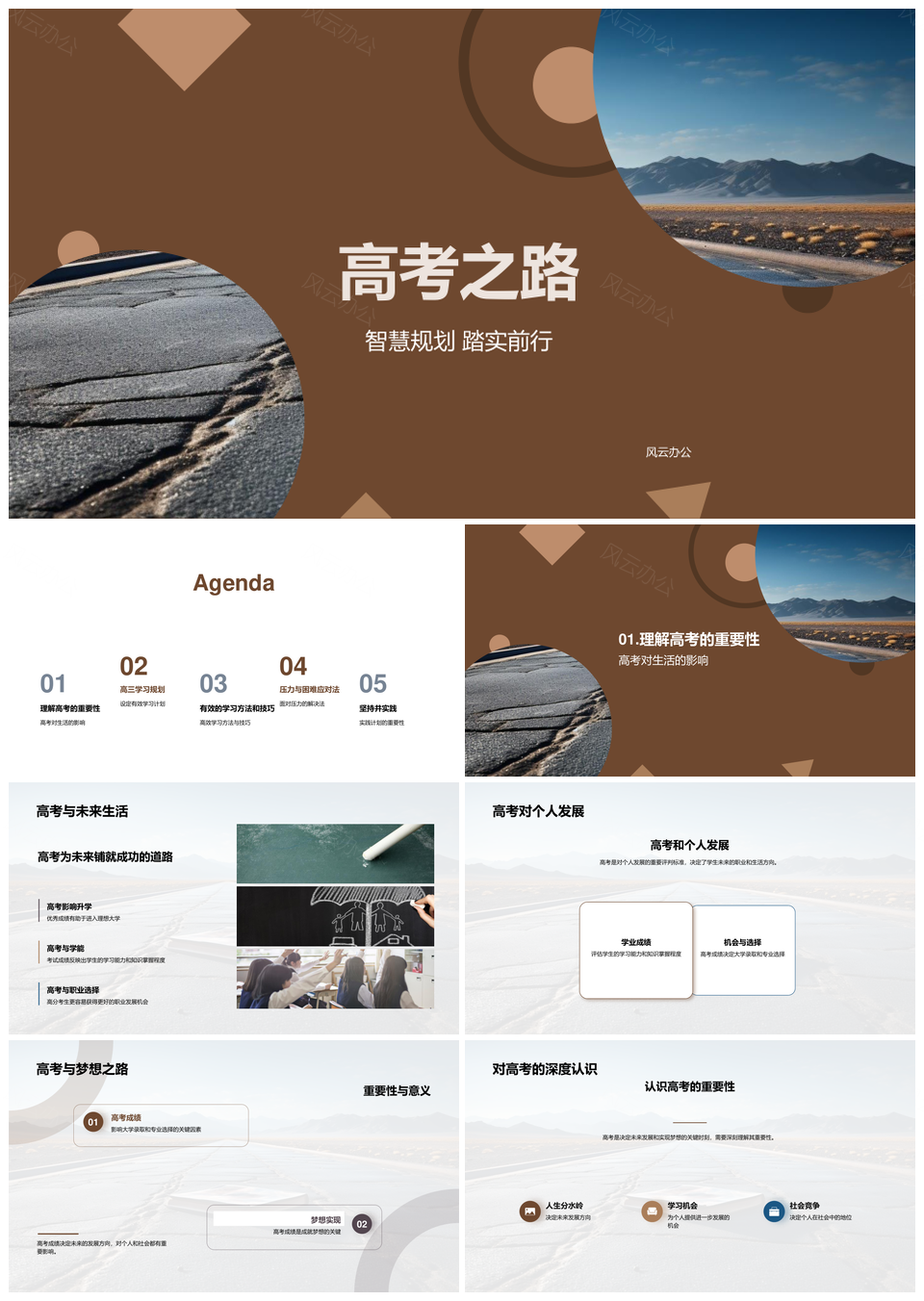 风云办公提供的高考之路智慧规划书山踏实前行实践PPT模板,下载格式为pptx,一共29页,作品中文字及图均可以修改和编辑,图片更改请在作品中右键图片并更换,文字修改请直接点击文字进行修改。