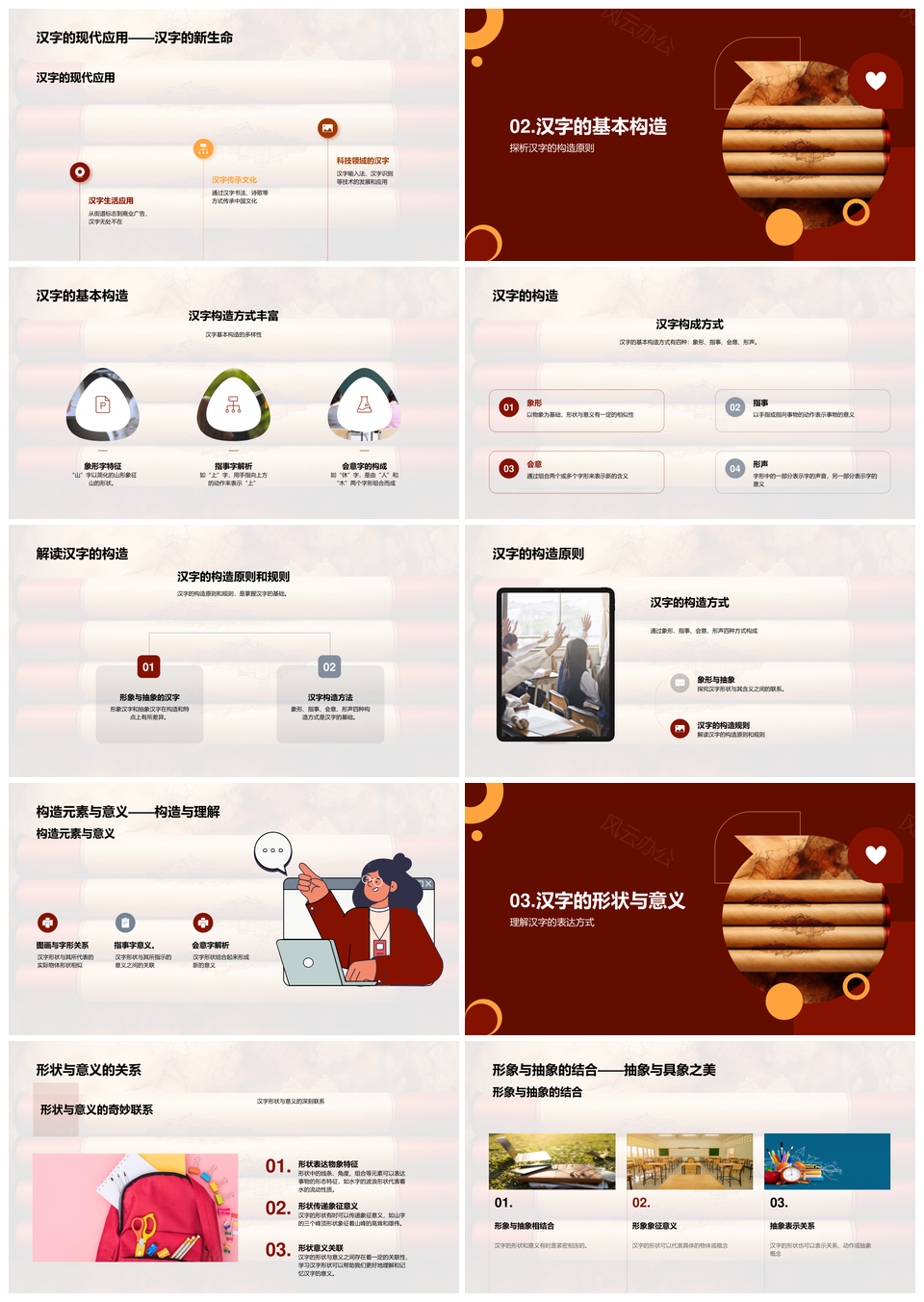 这是一张汉字构造起源演变形意之美融中国文化PPT模板,包含汉字构造、起源、演变、形意之美、中国文化等主题内容,也可用作汉字构造起源演变、汉字构造形意之美、汉字构造融中国文化、构造起源演变形意、构造形意之美文化、起源演变形意之美、演变之美融中国文化、形意之美融中国文化、汉字构造演变文化、构造起源中国文华、汉字起源之美文化、演变中国文华形意、汉字演变形意文化、起源之美融中国、构造之美中国文华等PPT场景使用。
