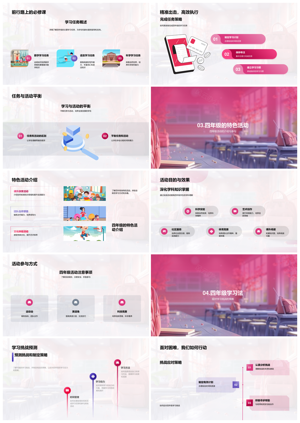 2025四年级新学期课程活动规划目标挑战成果PPT模板推荐