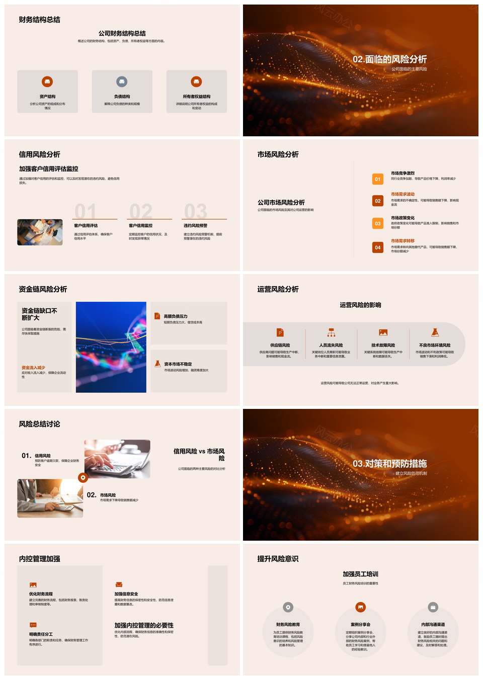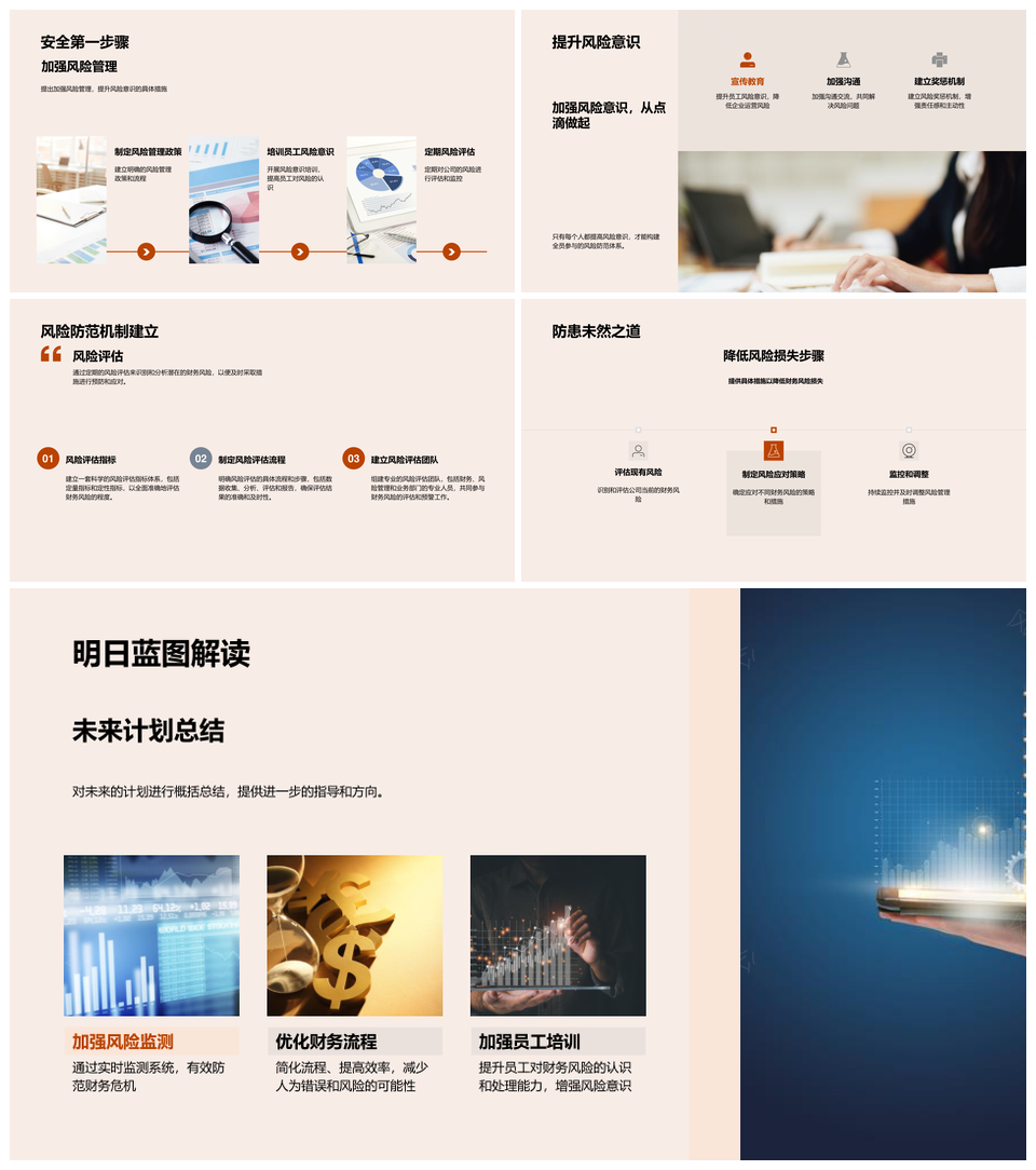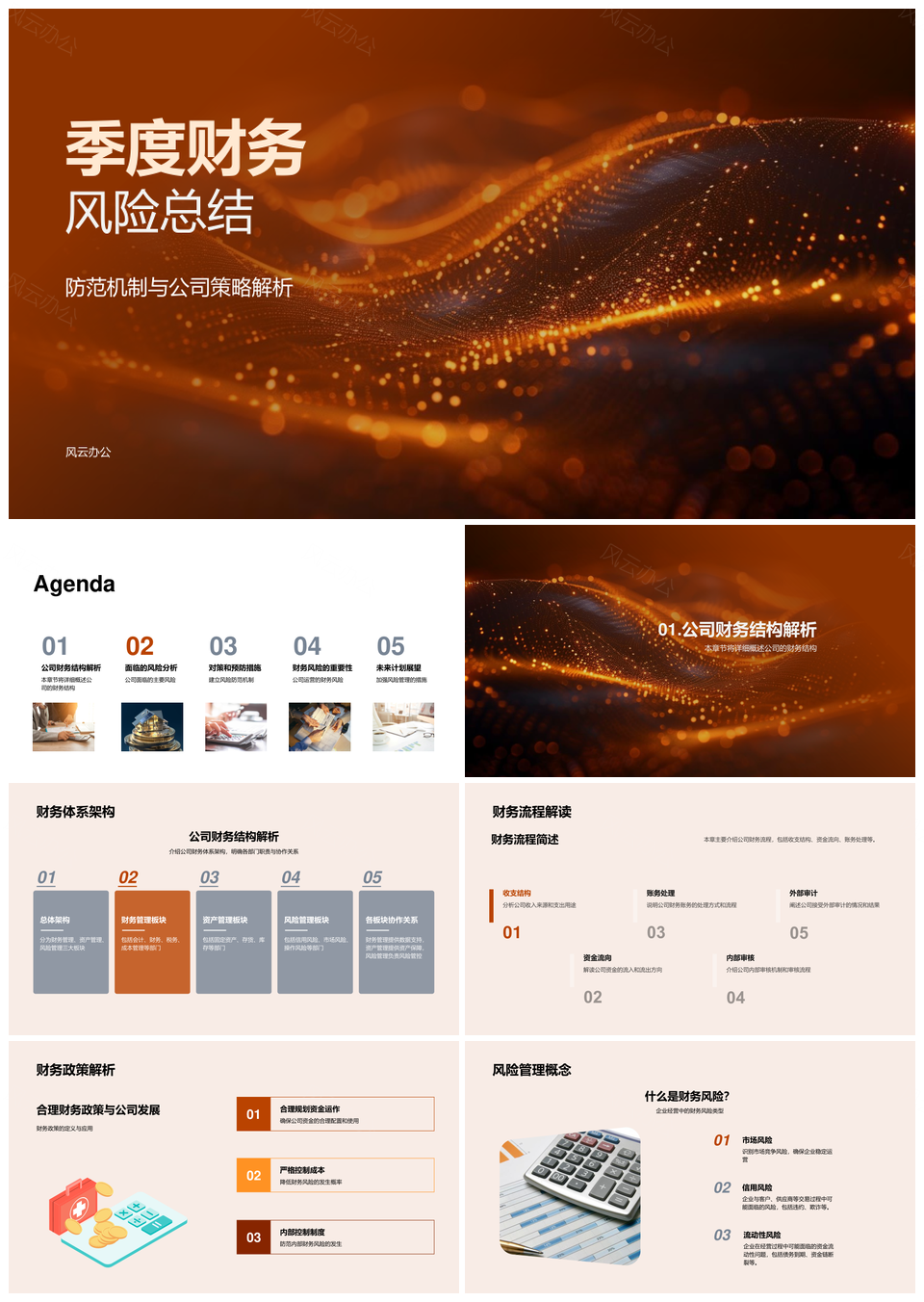 风云办公提供的季度财务风险总结与公司策略防范机制PPT模板,下载格式为pptx,一共33页,作品中文字及图均可以修改和编辑,图片更改请在作品中右键图片并更换,文字修改请直接点击文字进行修改。