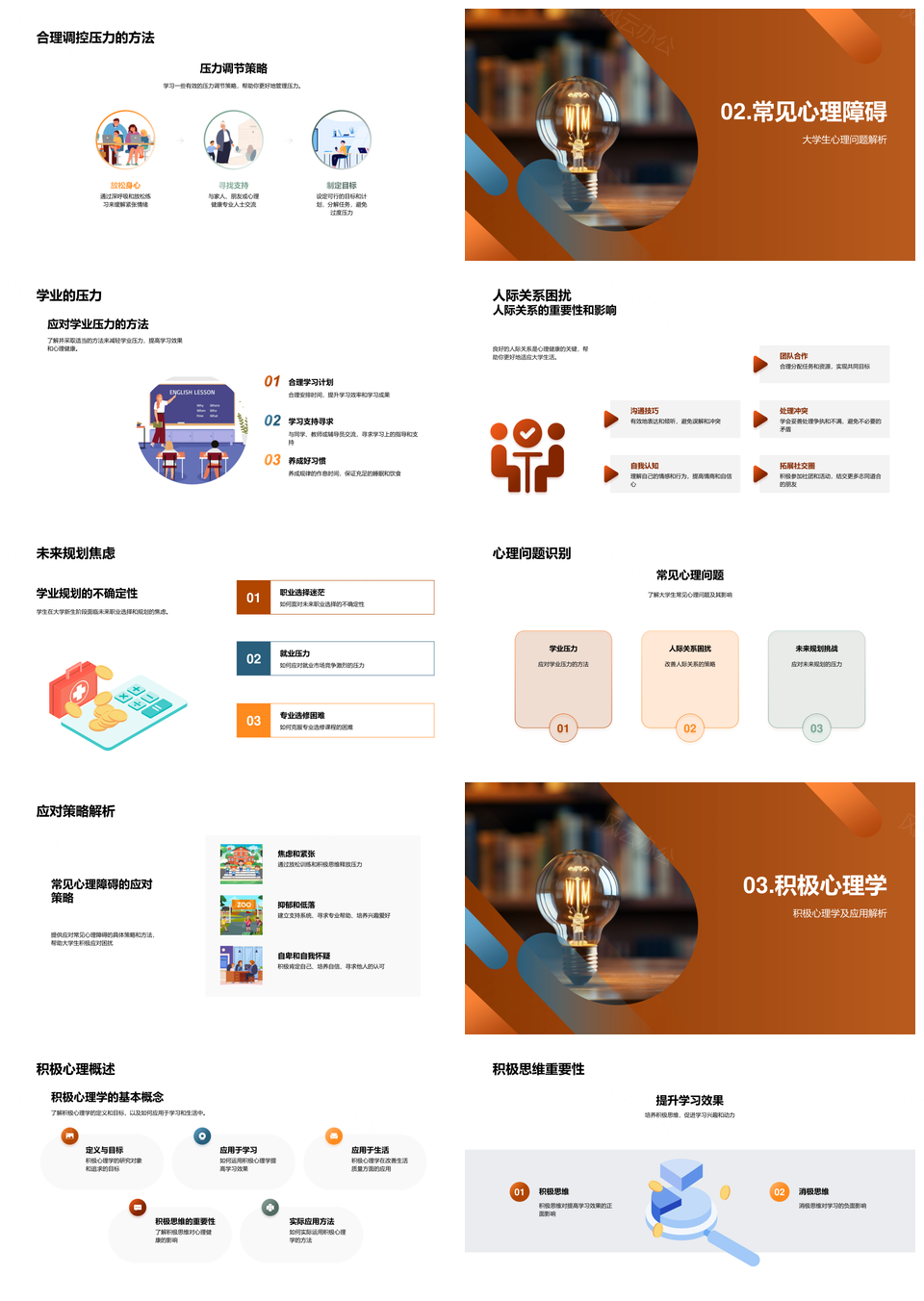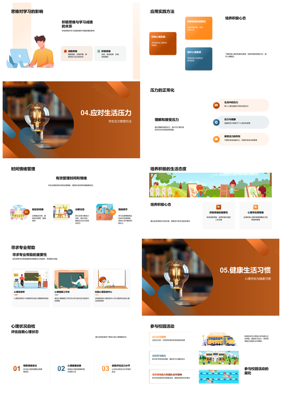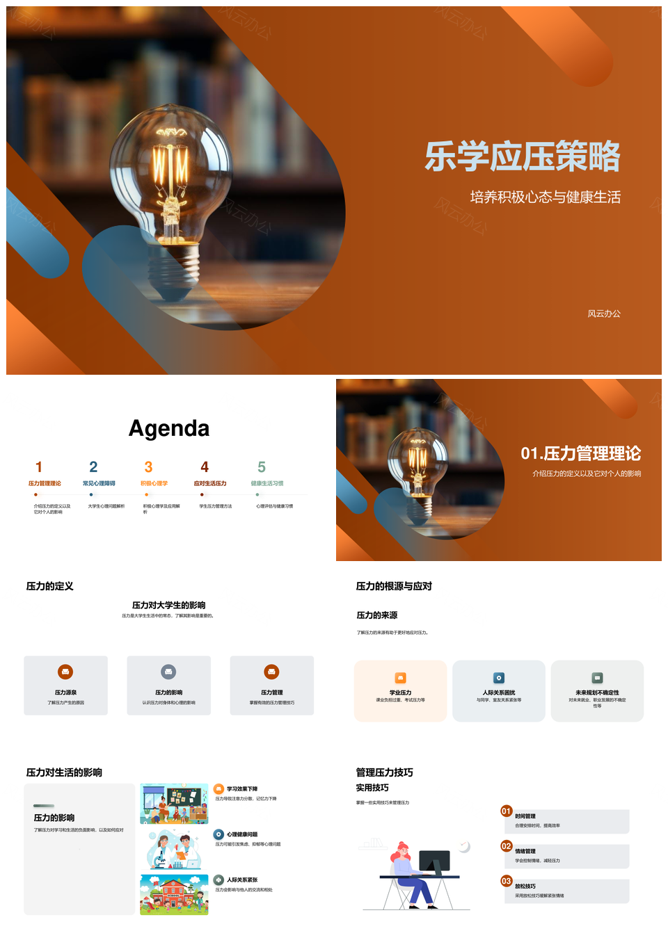 风云办公提供的大学生积极应对学业人际未来压力PPT模板,下载格式为pptx,一共31页,作品中文字及图均可以修改和编辑,图片更改请在作品中右键图片并更换,文字修改请直接点击文字进行修改。