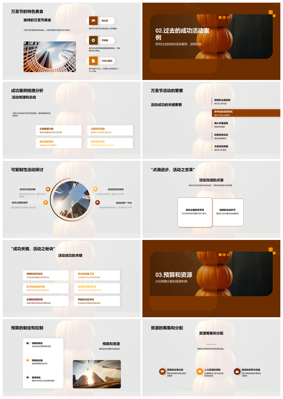 这是一张万圣节活动策划执行历史传统习俗企业案例预算南瓜灯PPT模板,包含万圣节、活动、策划、执行、历史、传统、习俗、企业、案例、预算、南瓜灯等主题内容,也可用作万圣节活动策划执行、活动策划执行历史传统、策划执行历史传统习俗、执行历史传统习俗企业、传统习俗企业案例预算、企业案例预算南瓜灯、万圣节活动策划、活动策划执行历史、策划执行历史传统、执行历史传统习俗、传统习俗企业案例、企业案例预算南瓜灯、案例预算南瓜灯、万圣节南瓜灯、活动策划执行等PPT场景使用。 风云办公提供的万圣节活动策划执行历史传统习俗企业案例预算南瓜灯PPT模板,下载格式为pptx,一共33页,作品中文字及图均可以修改和编辑,图片更改请在作品中右键图片并更换,文字修改请直接点击文字进行修改。