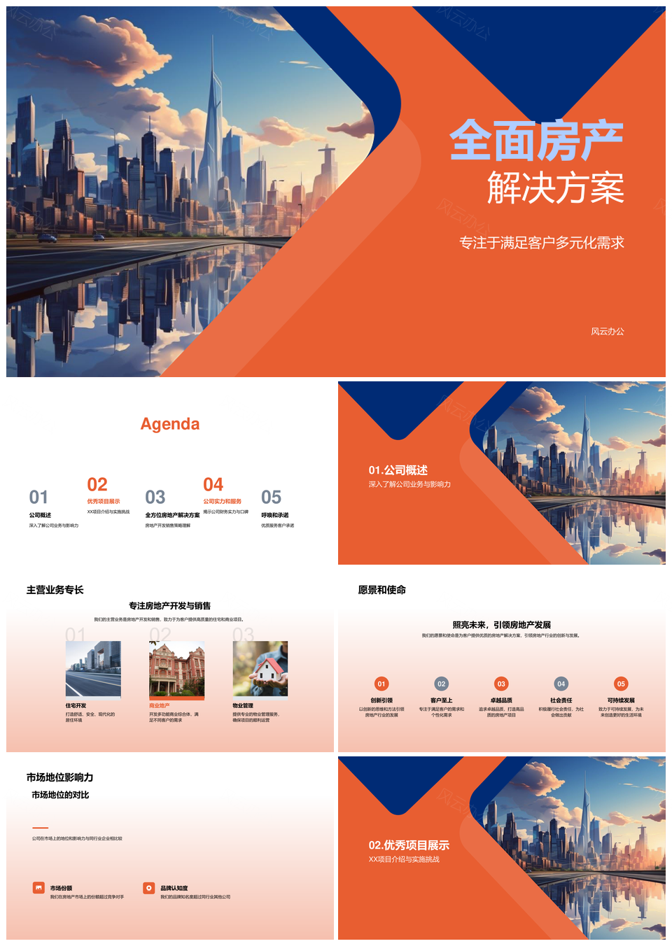 202520XX房产经营总结销售市占客户满意收益竞析股东共创摩天盛典PPT模板