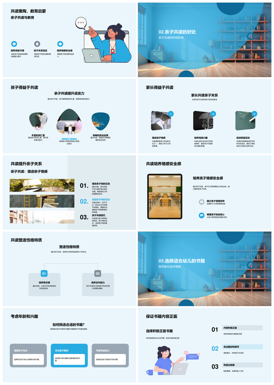 风云办公提供的亲子共读启蒙教育选书育情之路PPT模板,下载格式为pptx,一共33页,作品中文字及图均可以修改和编辑,图片更改请在作品中右键图片并更换,文字修改请直接点击文字进行修改。